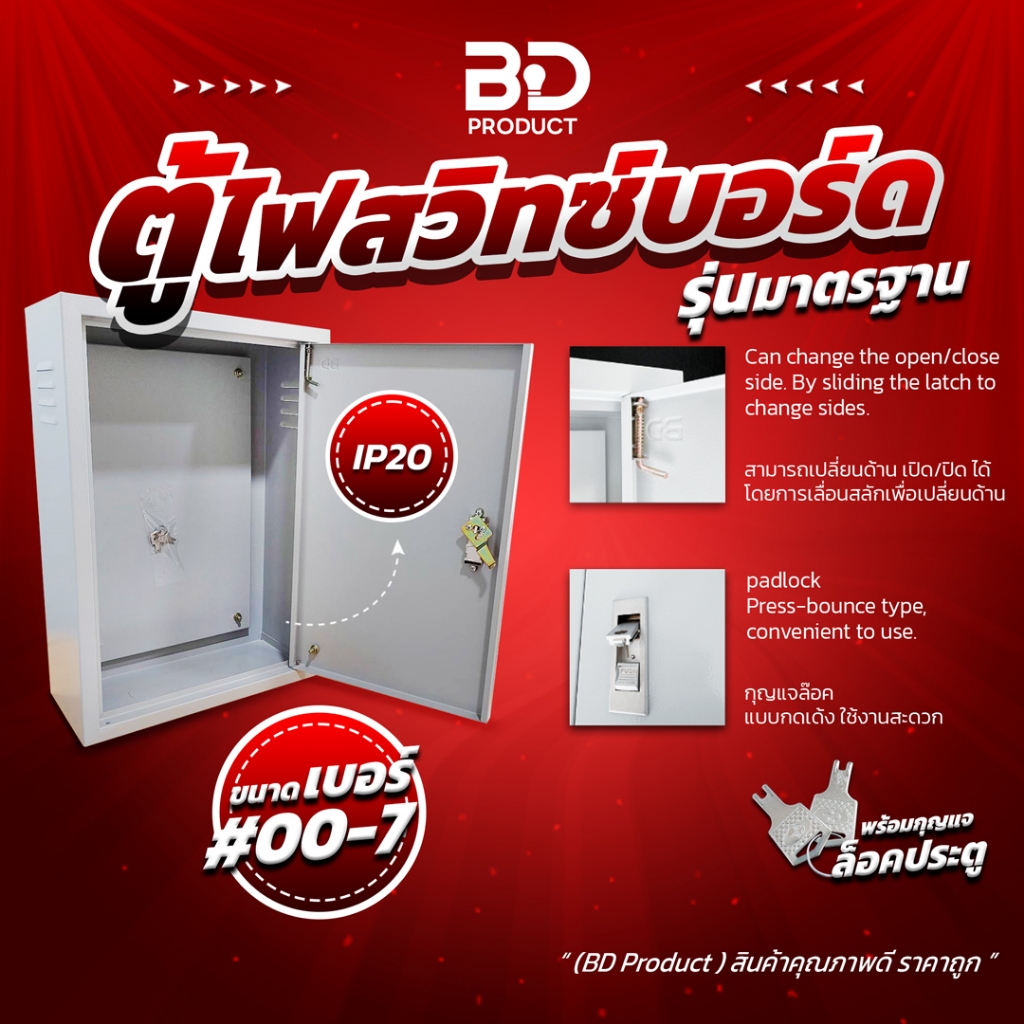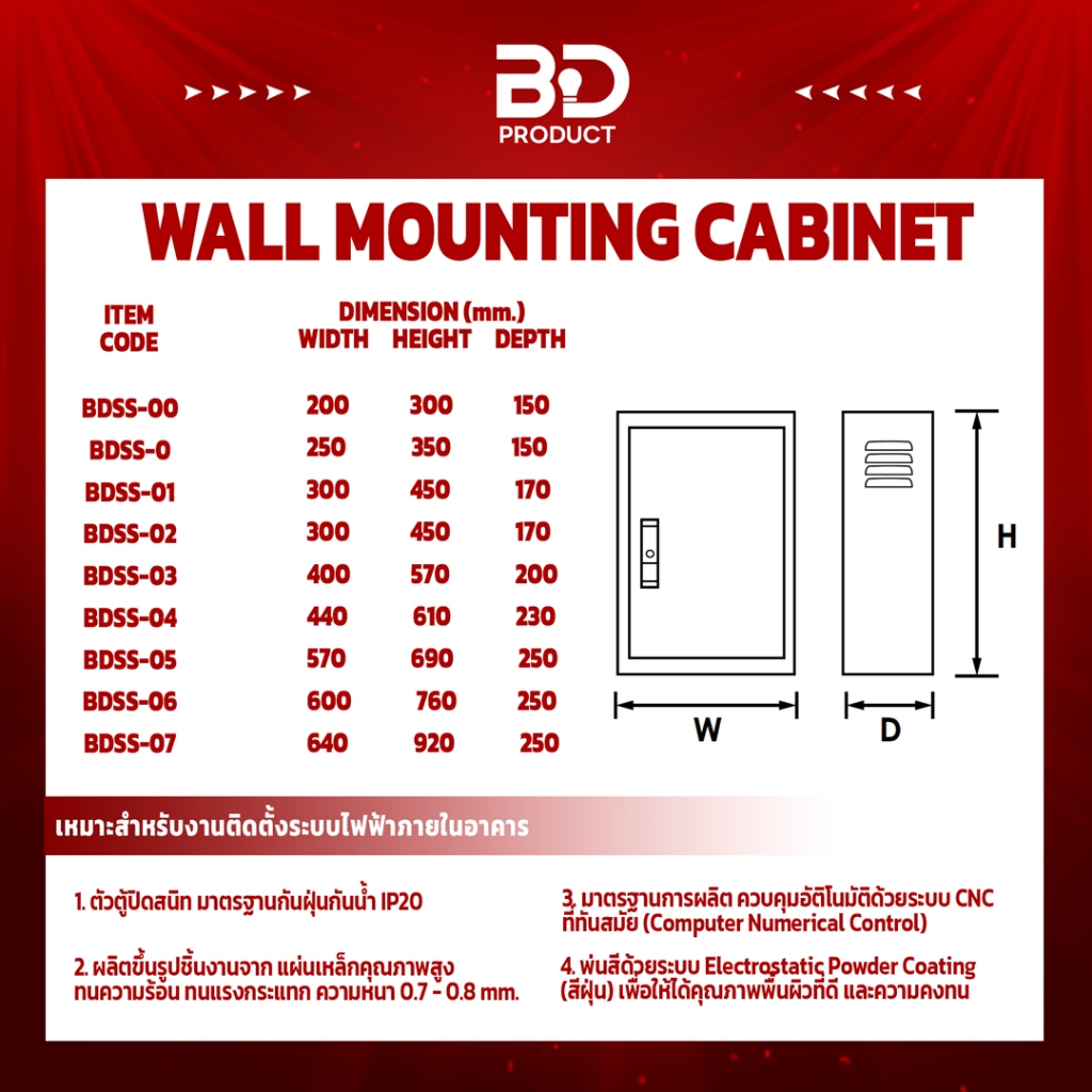 🎈 ตู้ไฟสวิทซ์บอร์ด ตู้เหล็ก งานไฟฟ้า ขนาดมาตรฐาน IP20 รุ่น BDSS แบบธรรมดา (พร้อมกุญแจล็อคตู้)