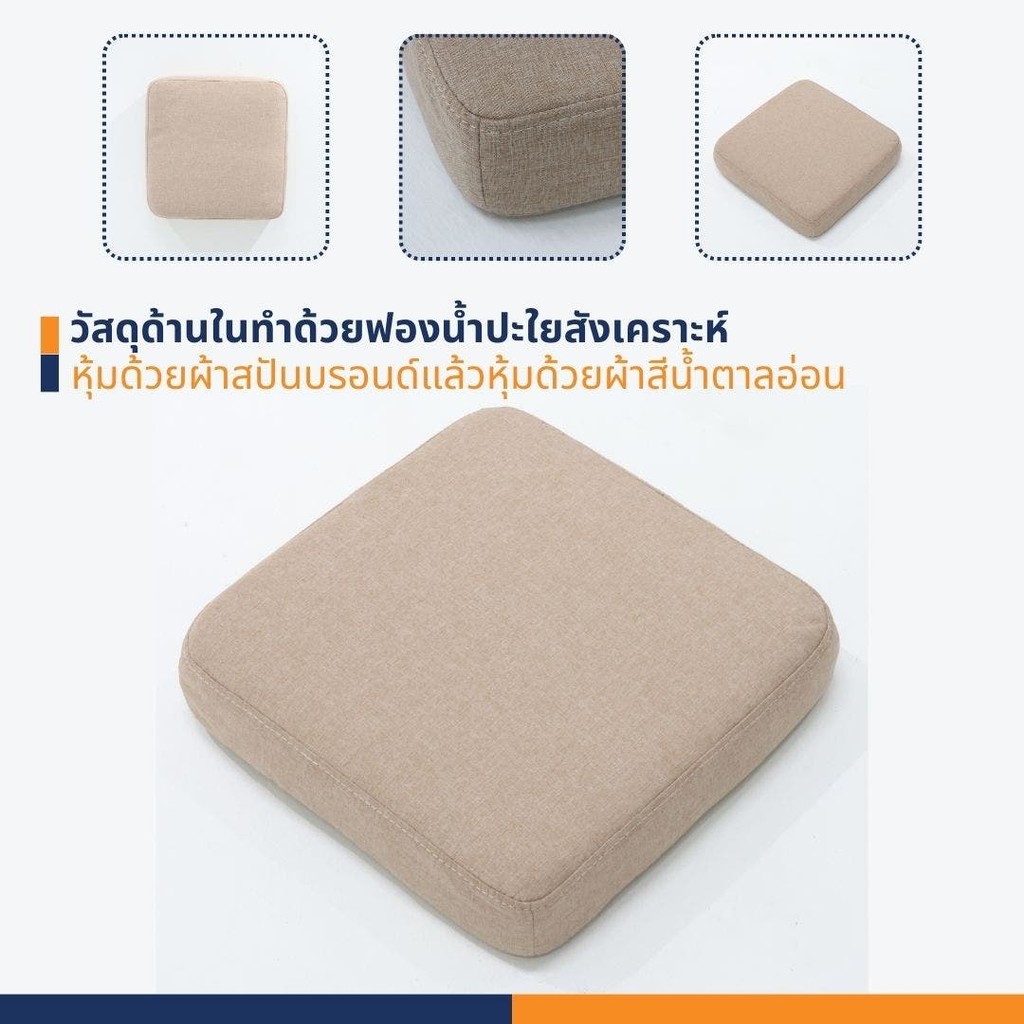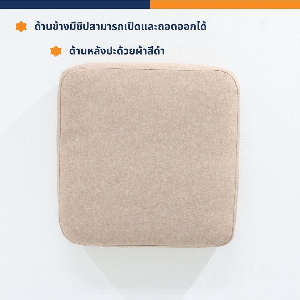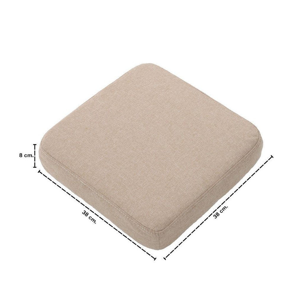 LOOMS เบาะรองนั่งสีเหลี่ยม ขนาด 38x38x8 ซม. วัสดุด้านในทำด้วยฟองน้ำปะใยสังเคราะห์แล้วหุ้มด้วยผ้าสปันบรอนด์แล้วหุ้มด้วยผ้าสีน้ำตาลอ่อน ด้านข้างมีซิปสามารถเปิดและถอดออกได้ และด้านหลังปะด้วยผ้าสีดำ เบาะนั่งอเนกประสงค์สามารถใช้นั่งรองตอนทำงานหรือกิจกรรมอื่นๆ