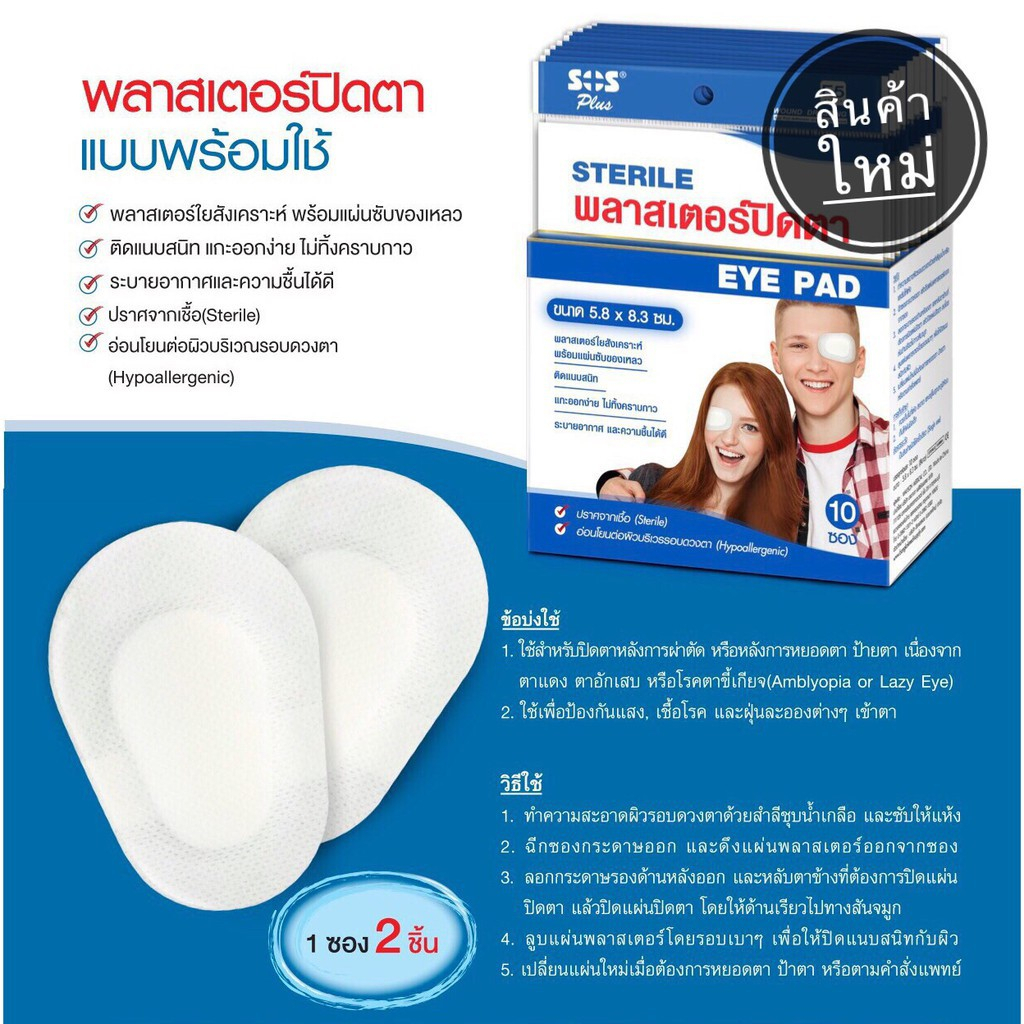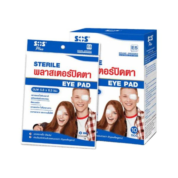 SOS Plus Sterile Eye Pad E5 พลาสเตอร์ปิดตา ขนาด 5.8×8.3 ซม. 2 แผ่น/ซอง [10 ซอง/1 กล่อง] สำหรับผู้ใหญ่