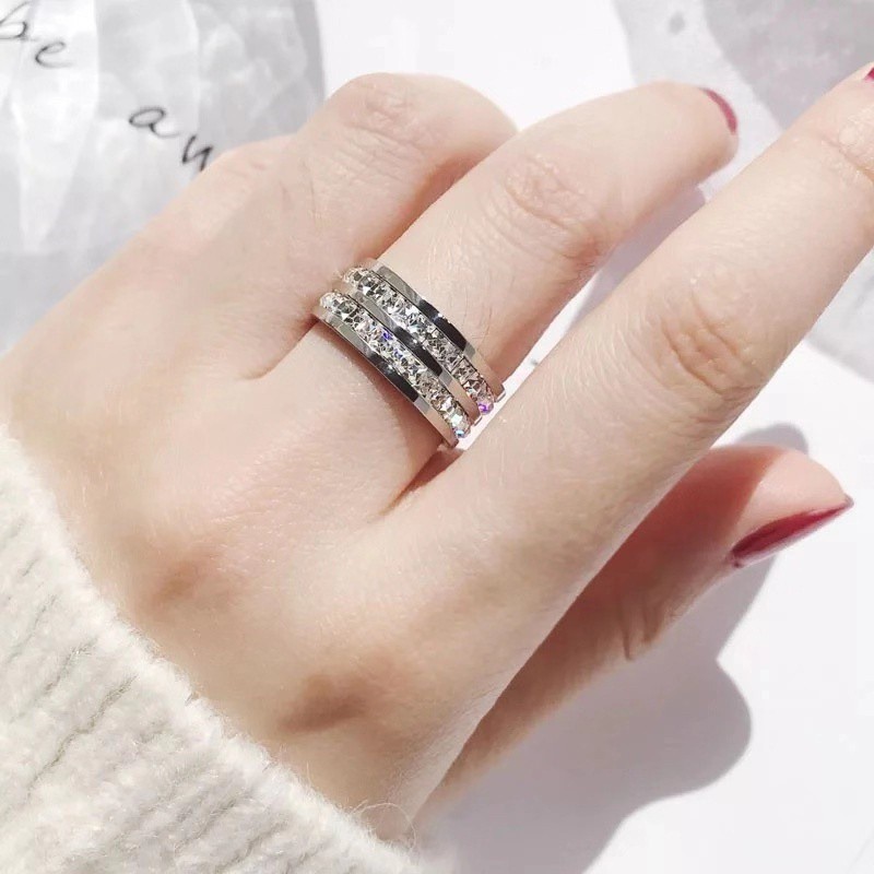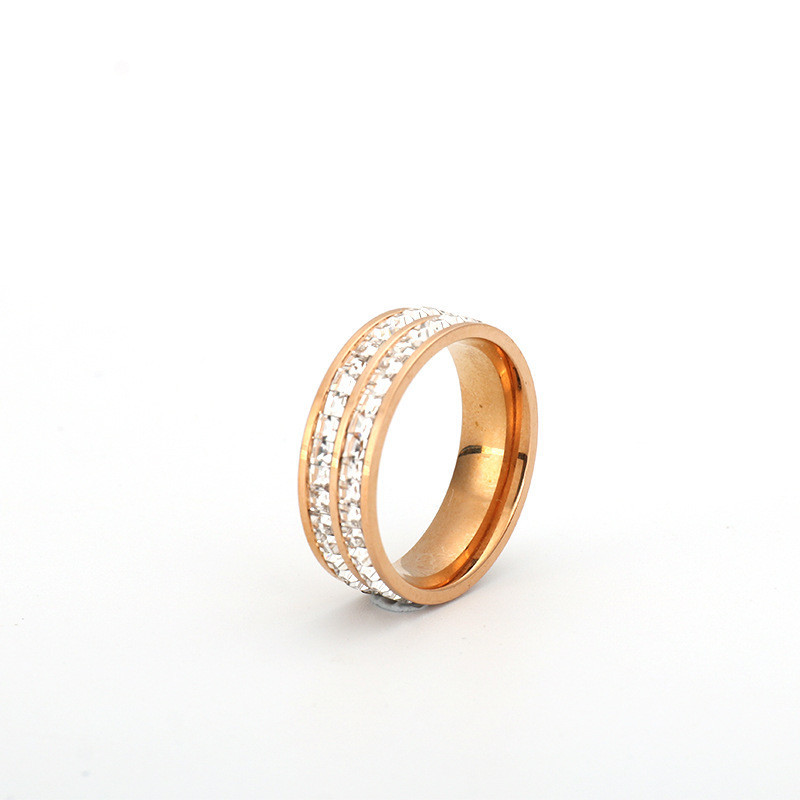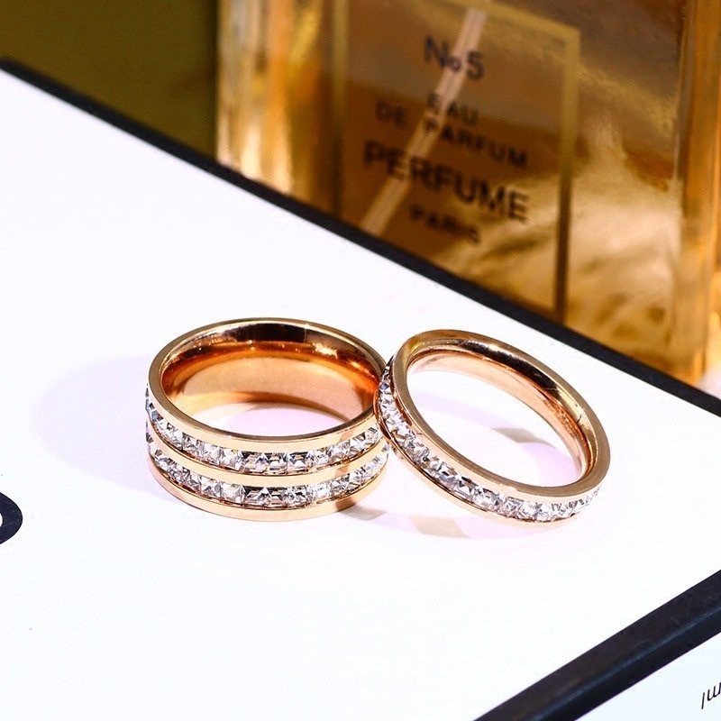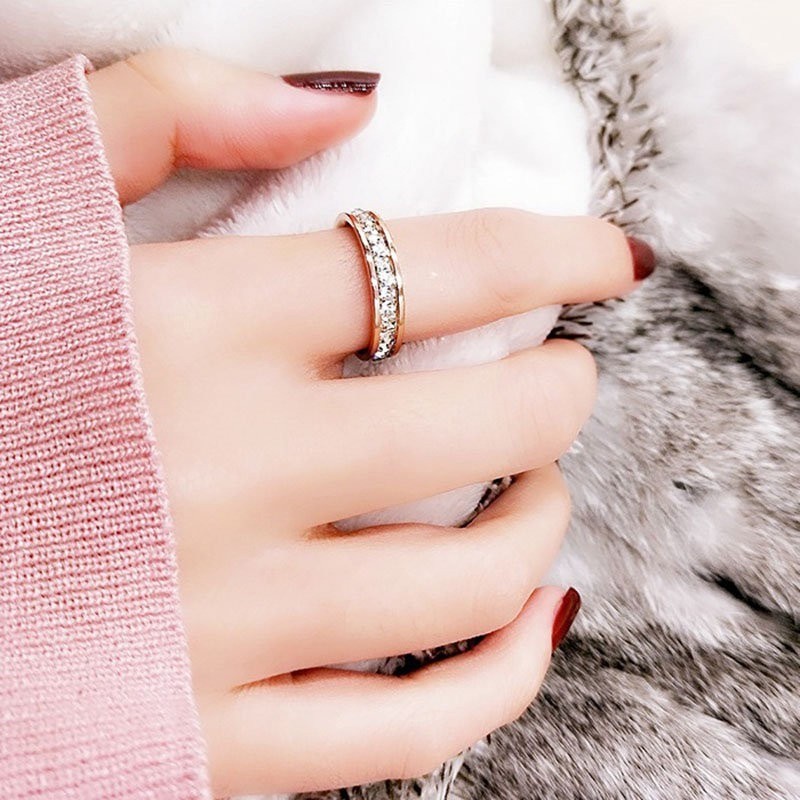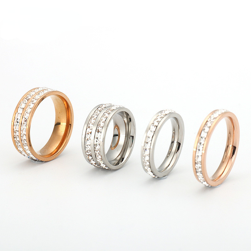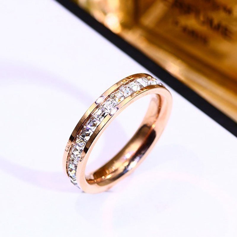 ซูเปอร์กระพริบเพทายสแตนเลสแถวเดียว/สองแถวแหวนผู้หญิงแหวนยิปโซระดับไฮเอนด์โรแมนติกของขวัญวันวาเลนไทน์เงิน/สีเหลือง/กุหลาบ