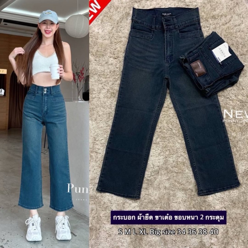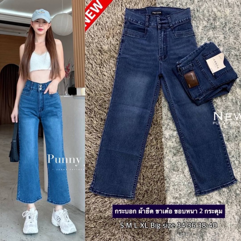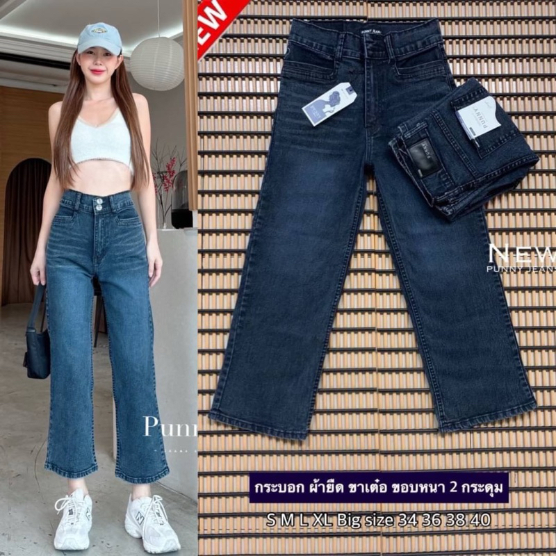 หยิบใส่ตะกร้าPN47มีไซส์34-40กางเกงยีนส์ยืดทรงกระบอก8ส่วนขาเต๋อสาวอวบอ้วน