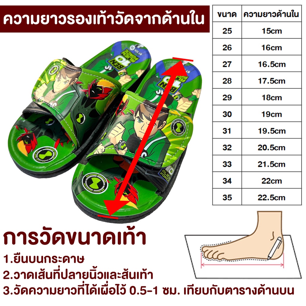 รองเท้าแตะสวมเด็กชาย ปรับสายได้ ลายเบนเทน BEN 10 ขนาด25-35 ยางนุ่มๆ ใส่สบายเท้า ลิขท์แท้ 100%