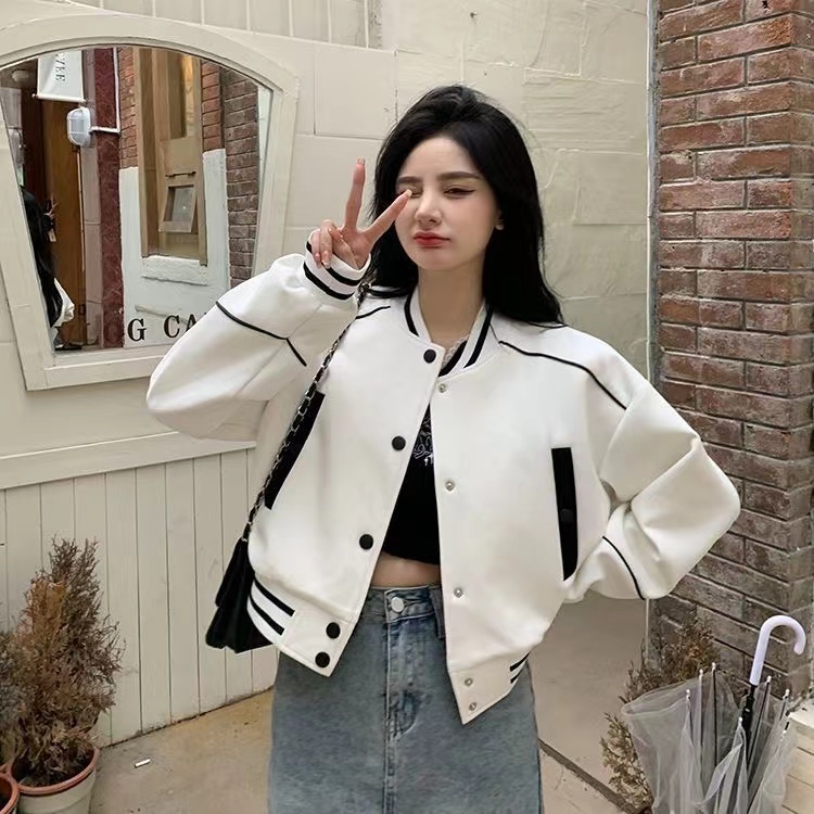 หยิบใส่ตะกร้าเสื้อแจ็กเก็ตเบสบอล ตัวสั้น สําหรับผู้หญิง