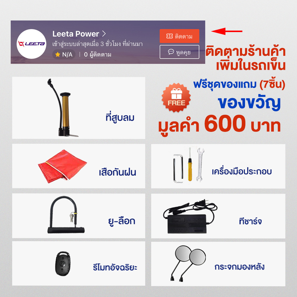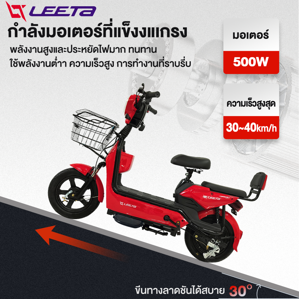 11.11】LEETA POWER จักรยานไฟฟ้า รถไฟฟ้าผู้ใหญ่ 500Wแบตเตอรี่48V12AH สกูตเตอร์ไฟฟ้า มีกระจกมองหลัง แจกฟรี7ซิ้น