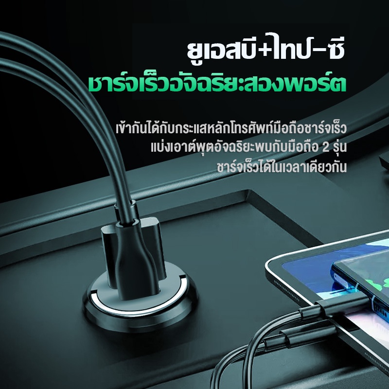 Car Charger USB-C PD 100W ที่ชาร์จเร็วในรถแบบ 2 ช่อง รองรับชาร์จเร็ว PD เทคโนโลยีใหม่ PPS ชาร์จเร็วได้ทั้ง iPhone/iPad/Samsung/MacBook จ่ายไฟสูงสุด 100W และมีช่อง QC3.0 มาให้อีกช่อง ชาร์จเร็ว Android ได้ด้วย ม