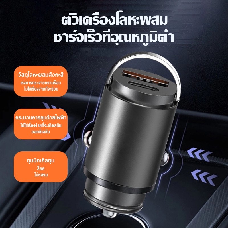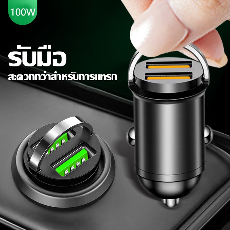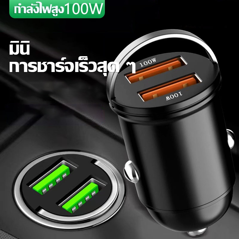 ที่ชาร์จแบตรถ12v ที่ชาร์จเร็วในรถ Power Delivery 100W Metal Dual Port Fast Car Charger ที่ชาร์จรถยนต์ขนาดเล็ก
