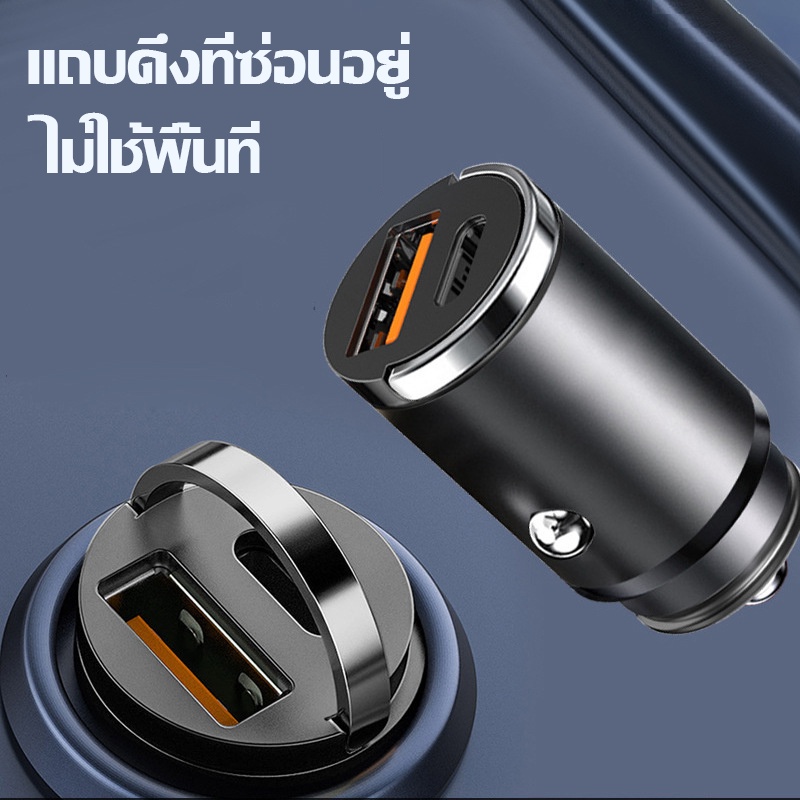 หยิบใส่ตะกร้าที่ชาร์จแบตรถ12v ที่ชาร์จเร็วในรถ Power Delivery 100W Metal Dual Port Fast Car Charger ที่ชาร์จรถยนต์ขนาดเล็ก