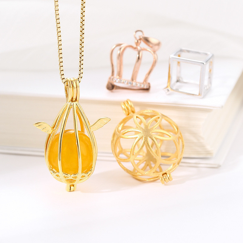 หยิบใส่ตะกร้าจี้ลูกปัดเงินแท้ S925 ทรงกลม สําหรับทําเครื่องประดับ | จี้ลูกบอลอโรมาเทอราพี แบบกลวง เหมาะกับผู้ชาย และผู้หญิง สําหรับแขวนกระถางธูป