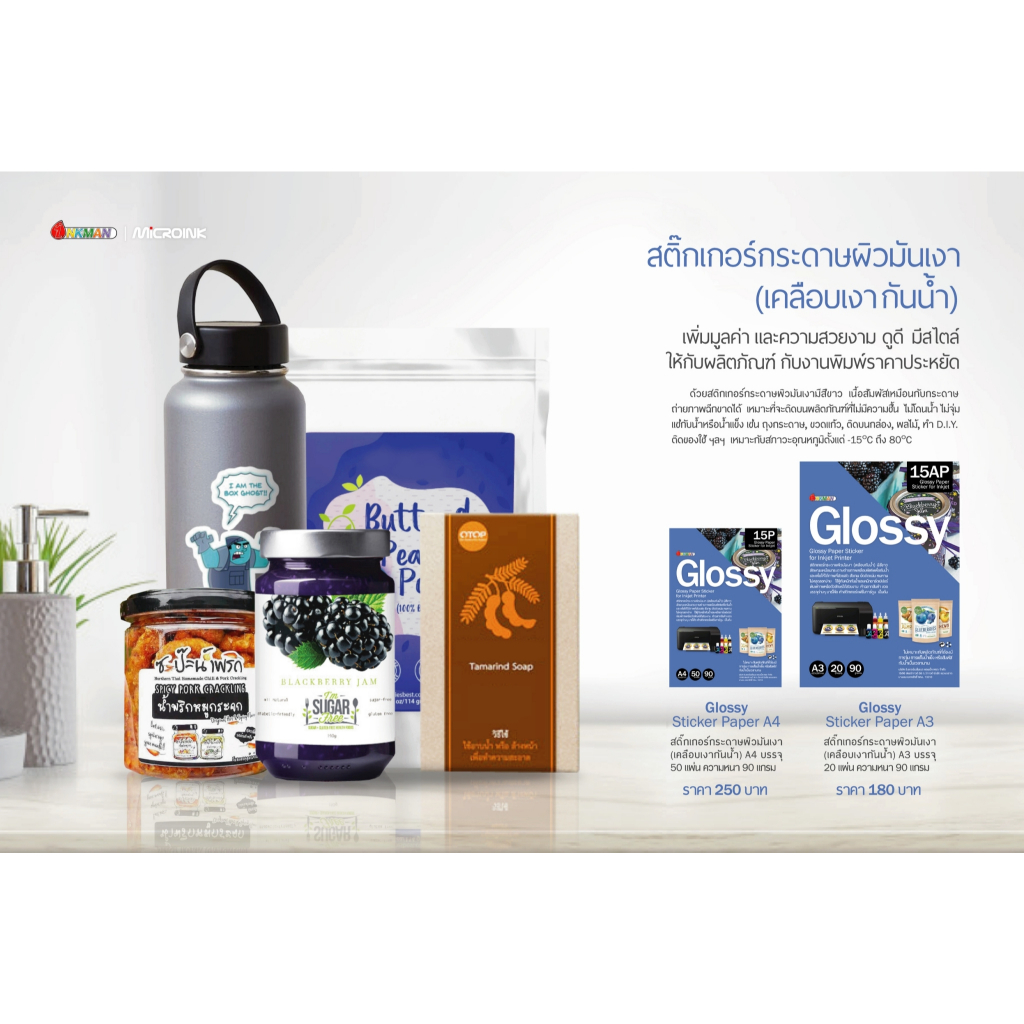 กระดาษสติกเกอร์กระดาษผิวมัน A3 บรรจุ 20 แผ่น/แพค Glossy (เคลือบเงา) ใช้คู่กับเครื่องพิมพ์น้ำหมึกกันน้ำของอิงค์แมน