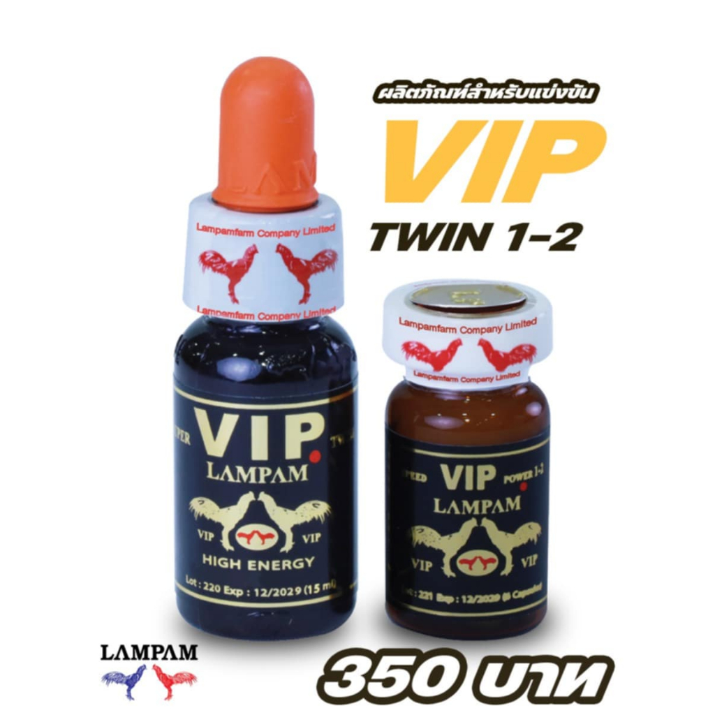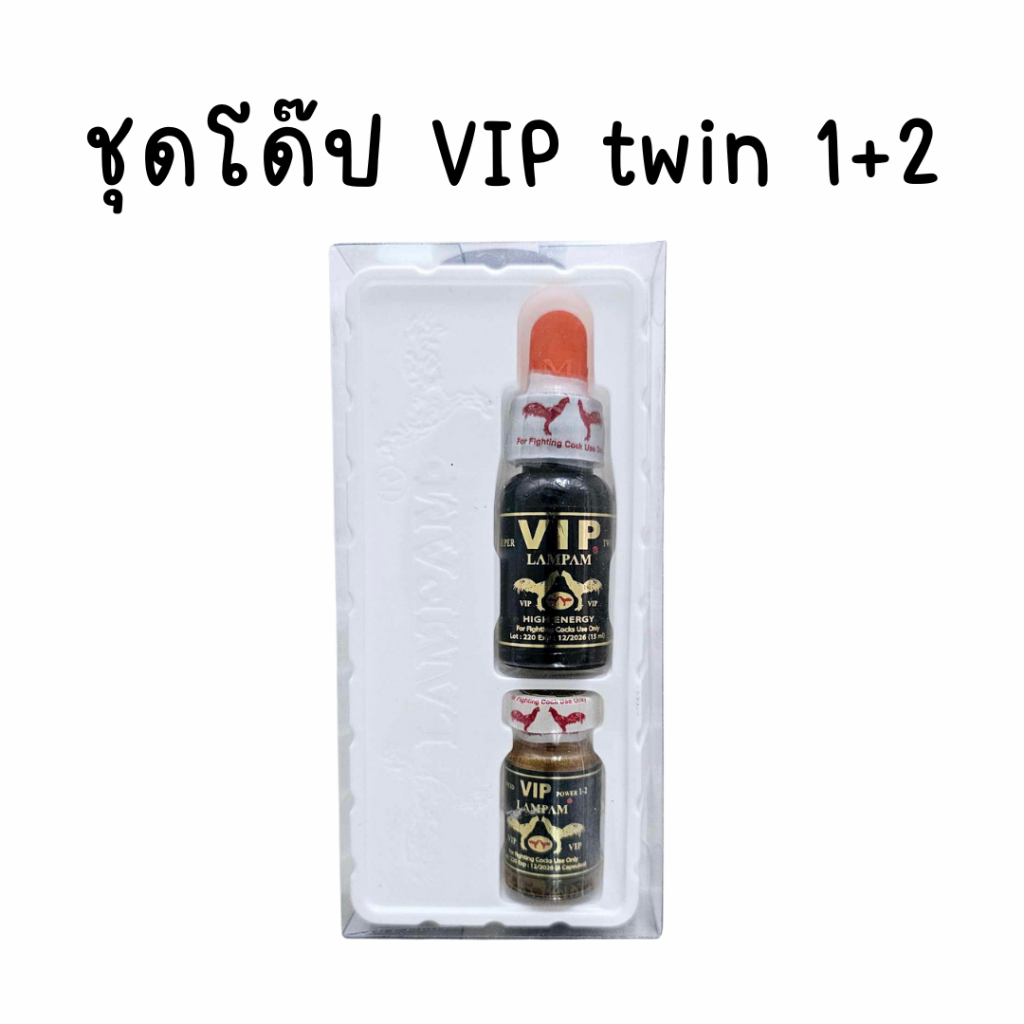 วีไอพีทวิน1+2 ลำปำ ชุดโด๊ปไก่ ชุดโด๊ปลำปำ ชนิดน้ำและเม็ด อาหารไก่ชน VIP twin