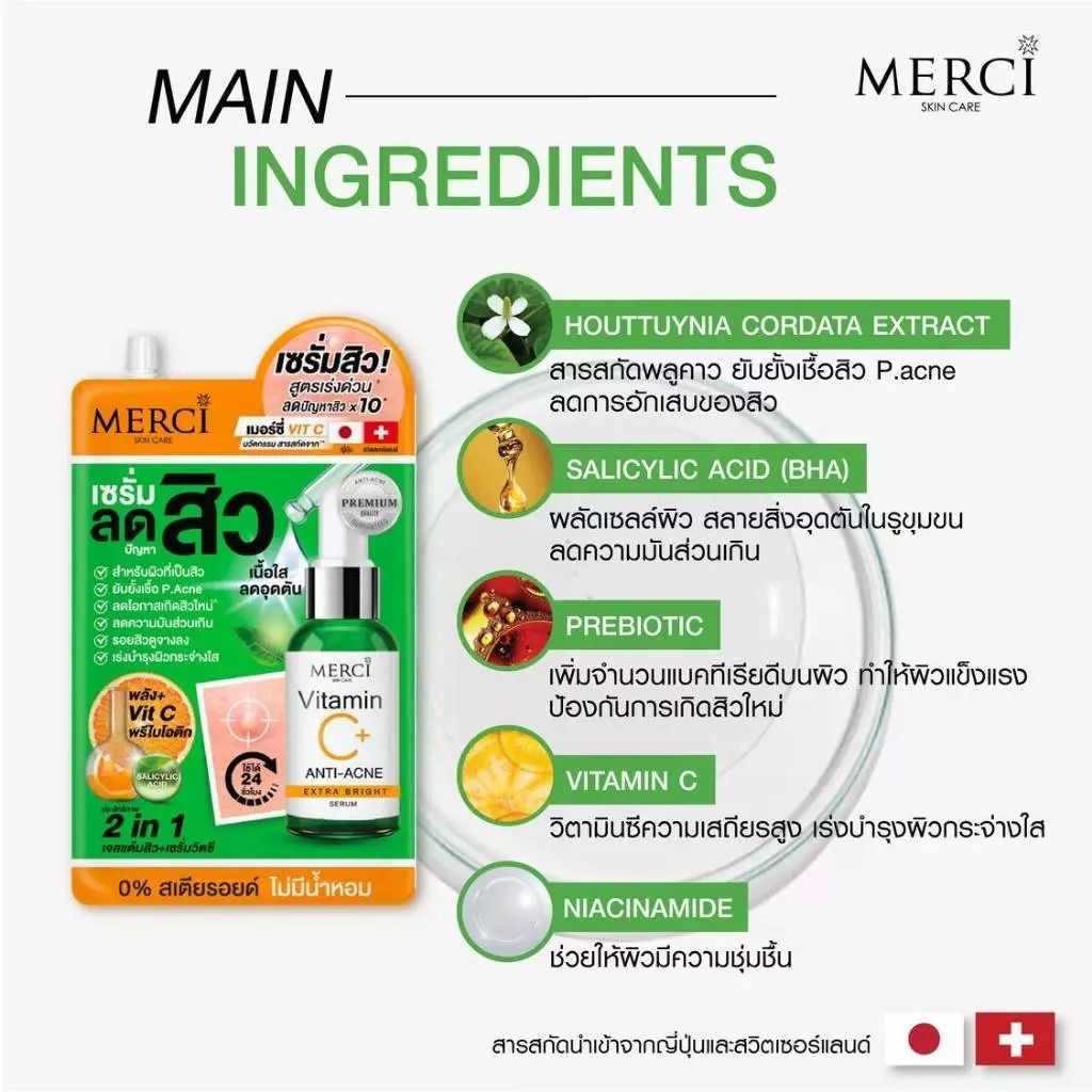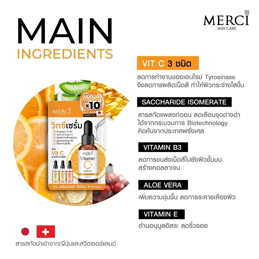 หยิบใส่ตะกร้า(ซอง) MERCI MERCI SKIN CARE Vitamin C Serum เมอร์ซี่ สกินแคร์ วิตามินซี 4 กรัม / 5 กรัม