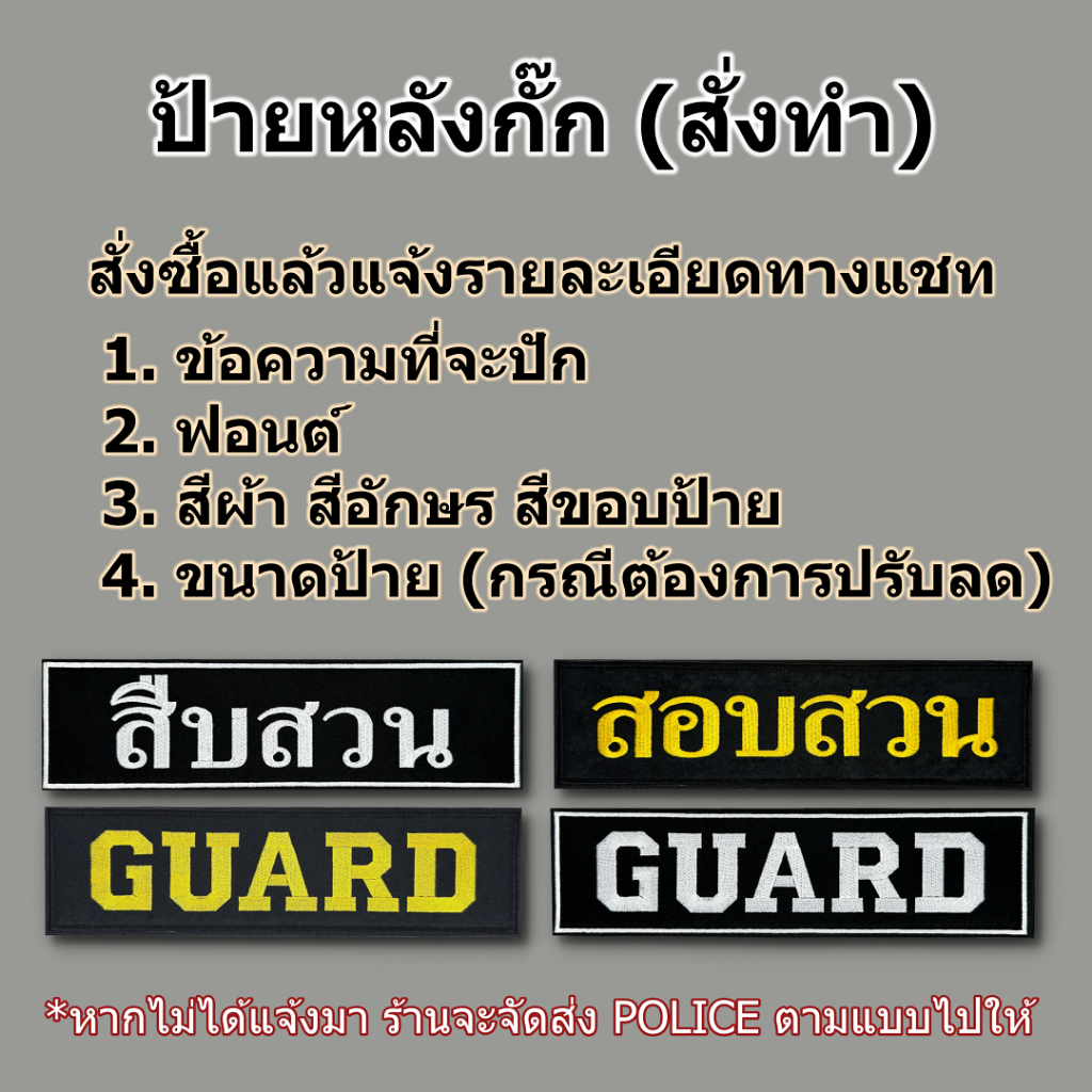 ป้ายข้อความผ้า สำหรับติดด้านหลังเสื้อกั๊ก แบบสั่งทำ