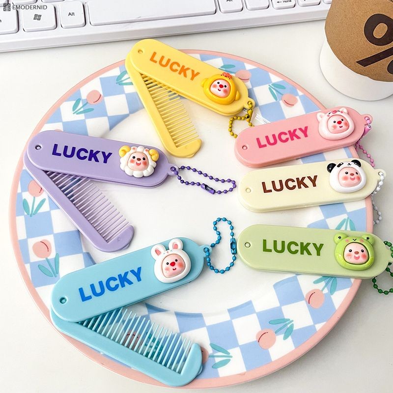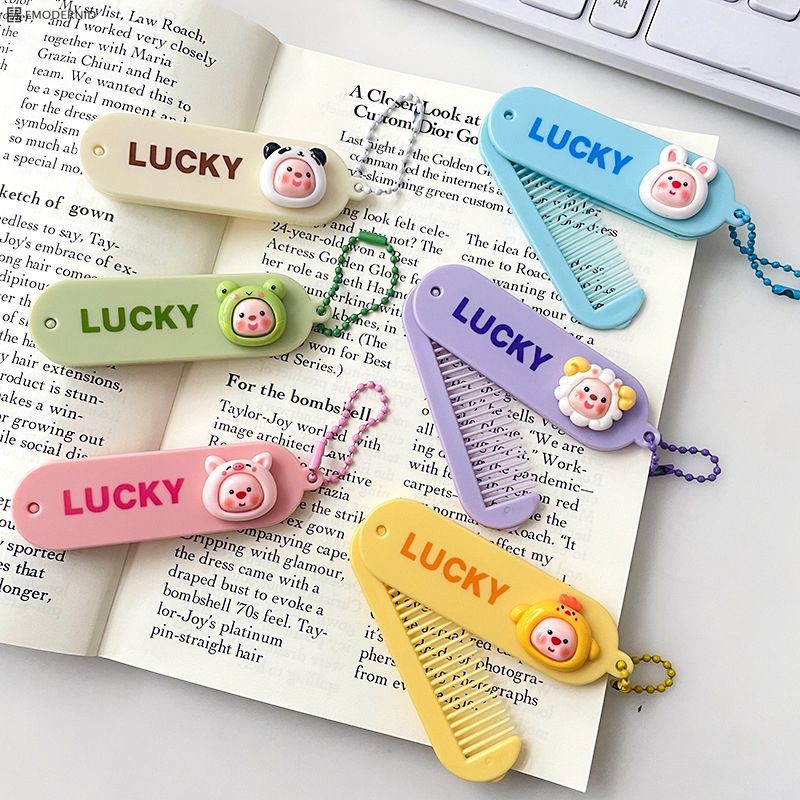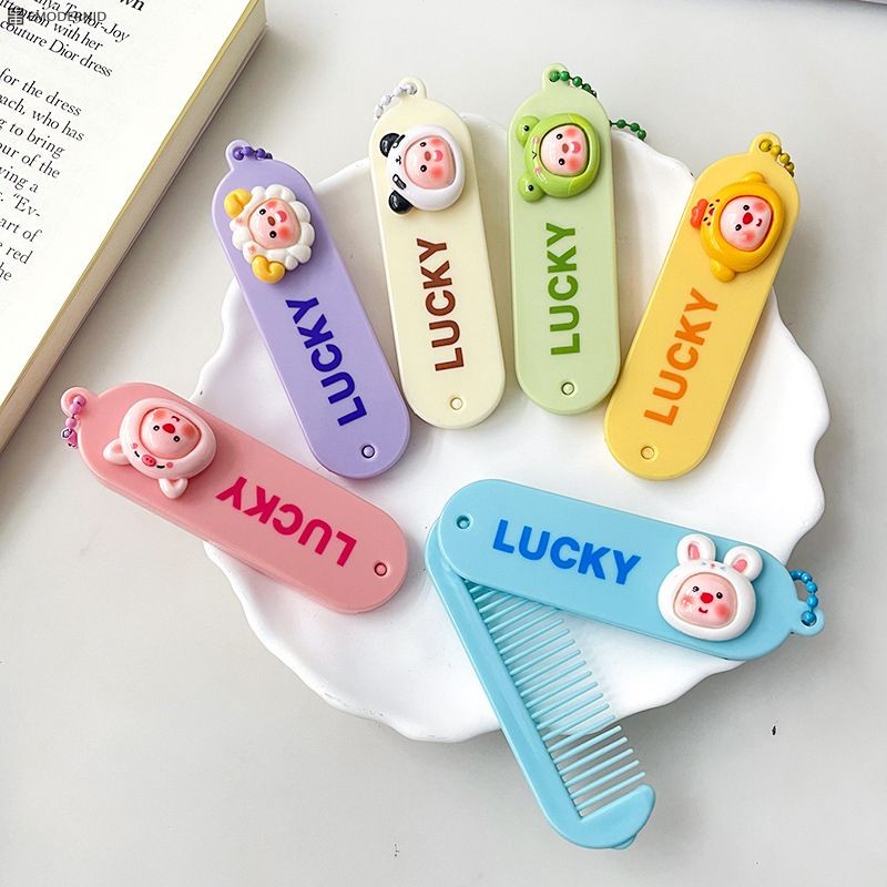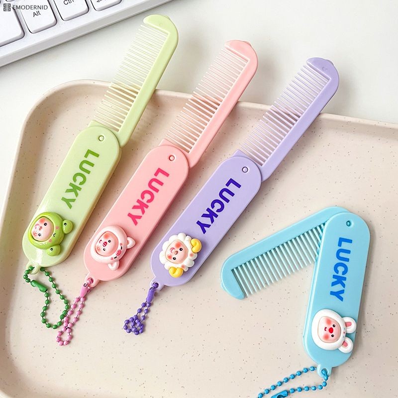 “น่ารักการ์ตูนสัตว์พับหวีผู้หญิงบ้านหวีผมนักเรียนหวีขนาดเล็กพกพา