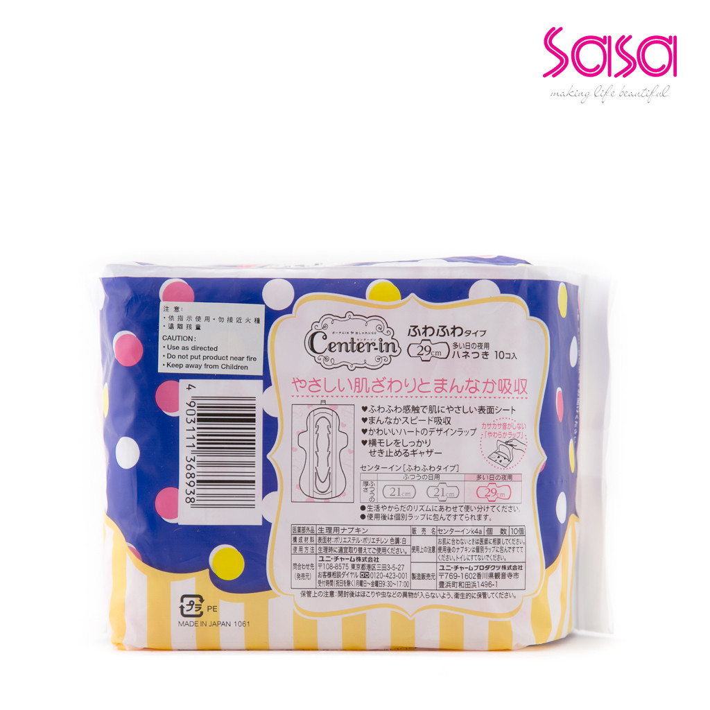 Center-In is a famous brand for female products in Japan. Compact Slim sanitary napkins use soft cotton, which provides speedy absorption. The soft fluffy cottony surface makes you feel fresh. The sha