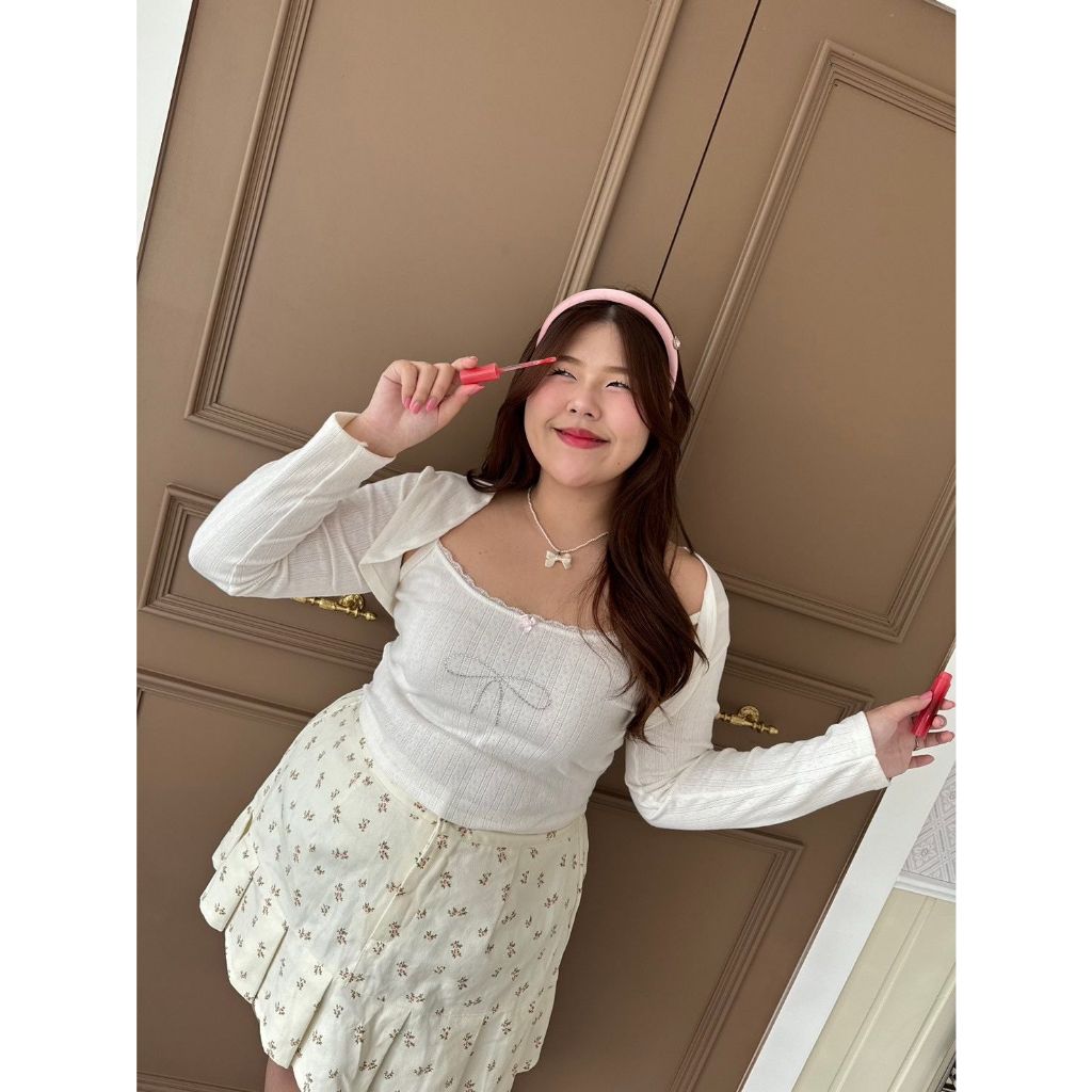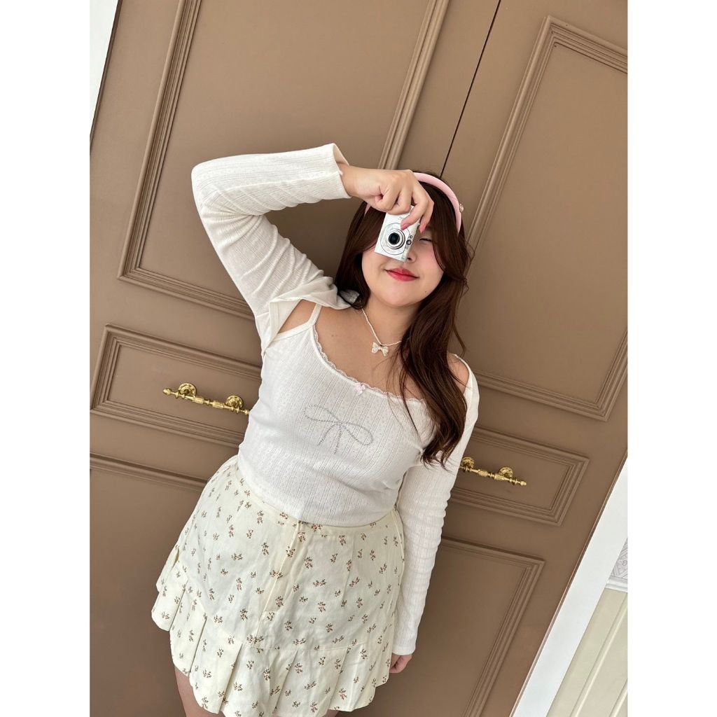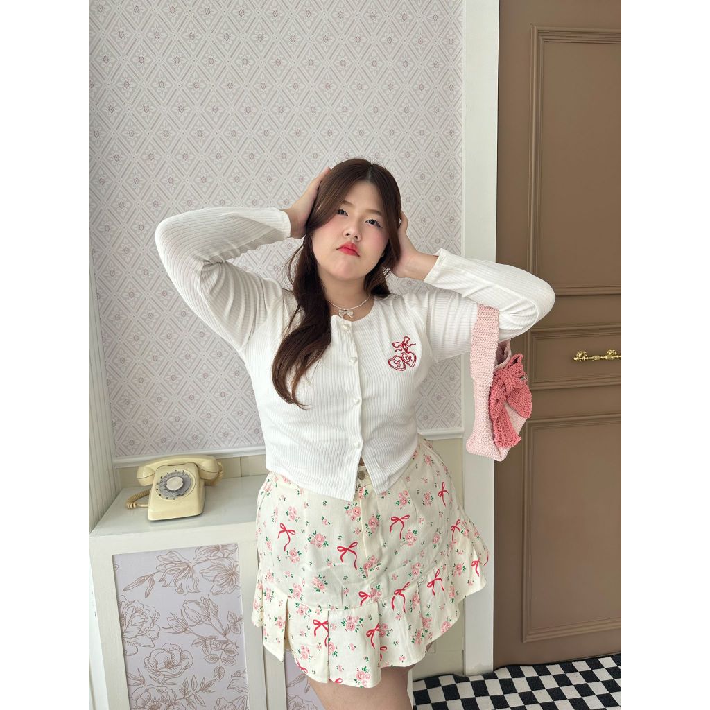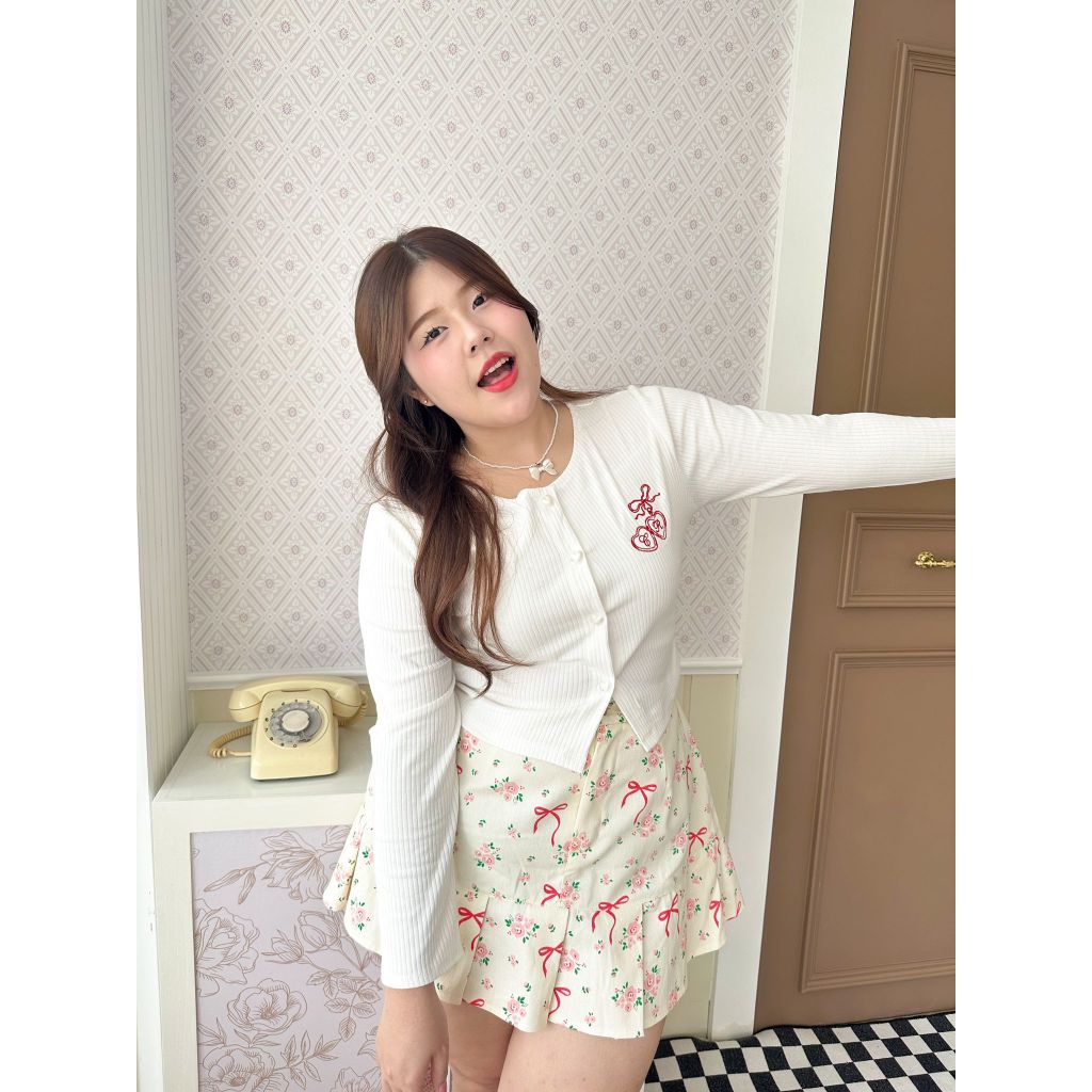 กระโปรงยีนส์ทรงน่ารักมากก ทรงเก็บหุ่นสุดๆ เป็นผ้ายีนส์พิมพ์ลายนะคะ🍒 น่ารัก number 1 แมชกับชุดได้หลายแบบเลย!!
