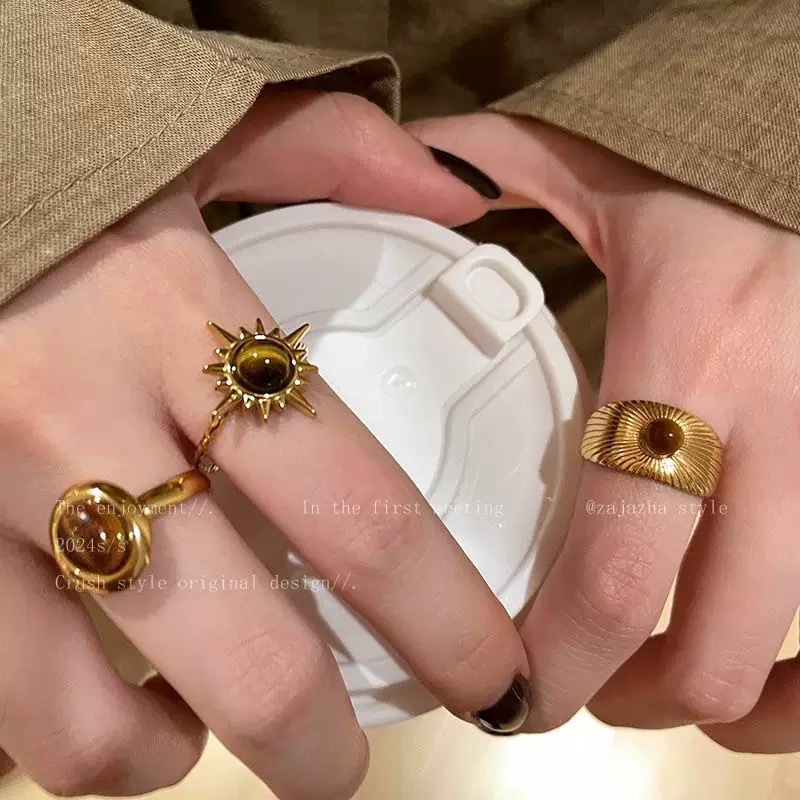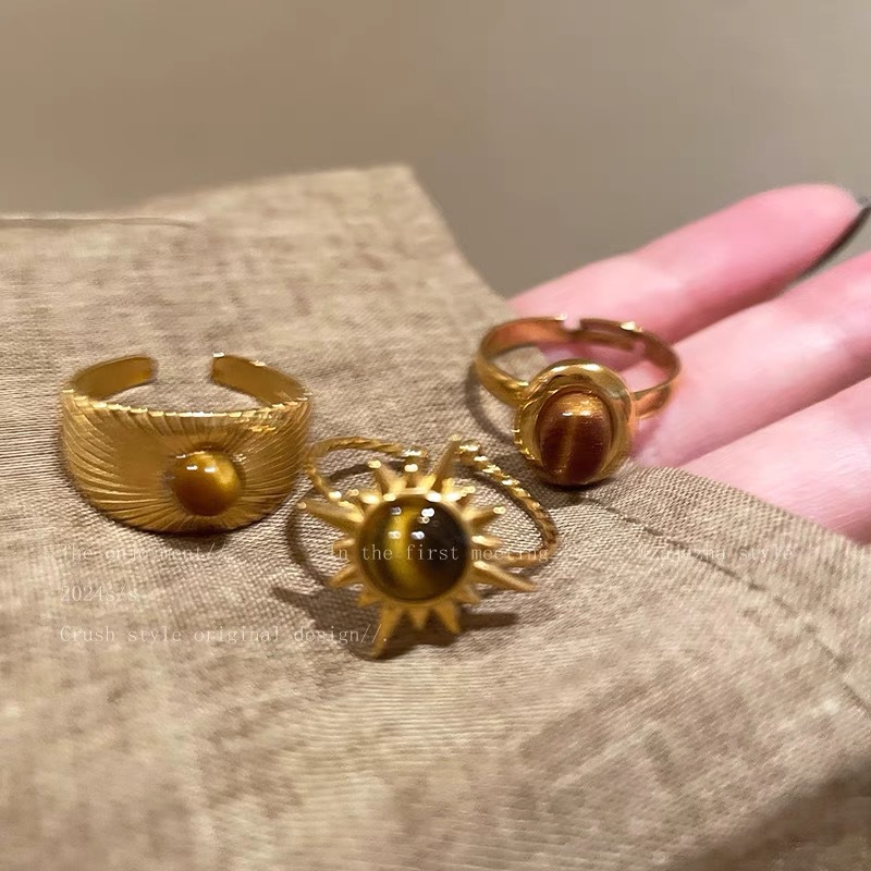 แหวนปรับดอกทานตะวันวินเทจสําหรับผู้หญิงการออกแบบเฉพาะดอกไม้แฟชั่นเครื่องประดับงบ