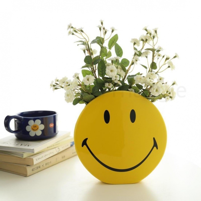 แจกันเซรามิค ลายหน้ายิ้ม สไตล์นอร์ดิก สําหรับตกแต่งบ้าน ห้องนั่งเล่น