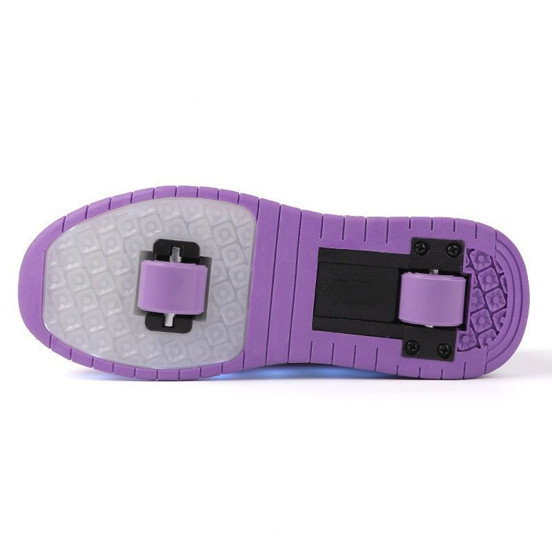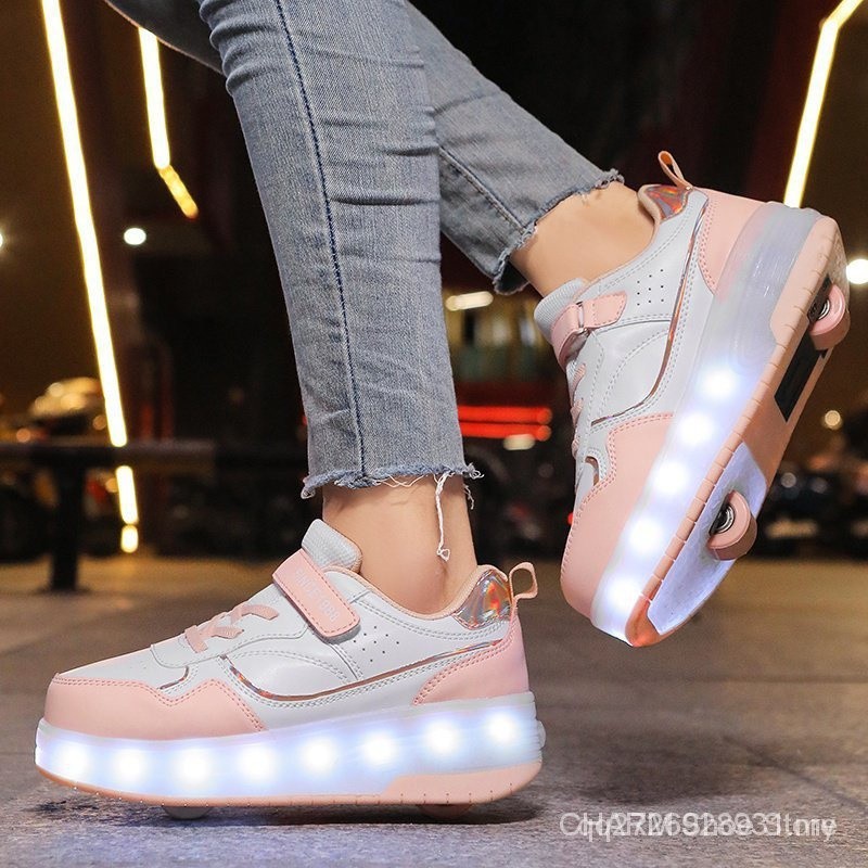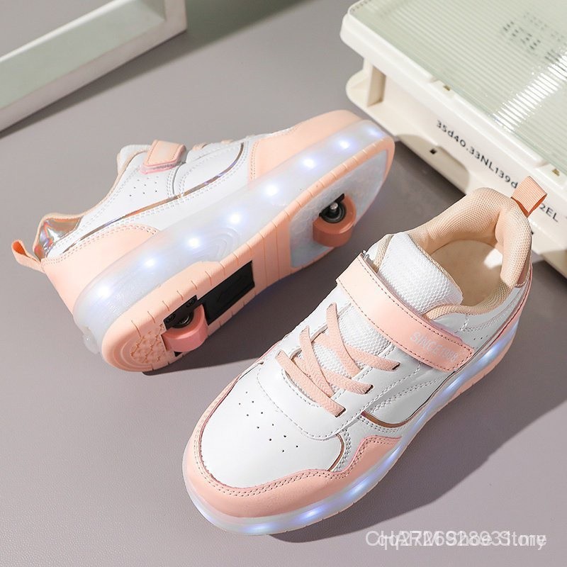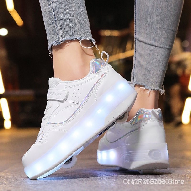【100% High Quality】 Teenager walking shoes rechargeable LED shoes adult and kids roller skate small white shoes with whe