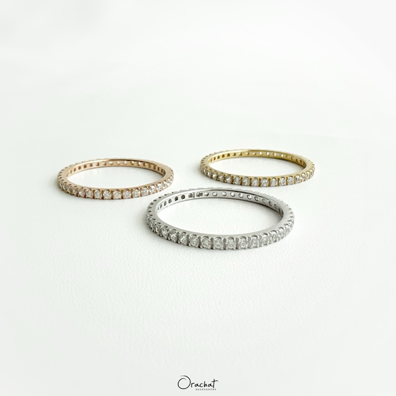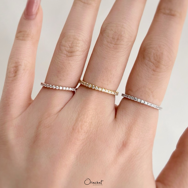 แหวนตัวเรือนเงินแท้ ล้อมใด้วยเพชร CZ ทั้งวง งานละเอียดเกรดส่งออก เพชรสวยวิ้งการันตีความปัง วิ้งตาแตกมากๆๆๆๆ แหวนเพชรรอบวงคือไอเท็มเบสิคที่ทุกคนควรมีติดไว้เลยค่ะ ได้ใช้ ใส่สวย รับรองว่าจึ้ง!
