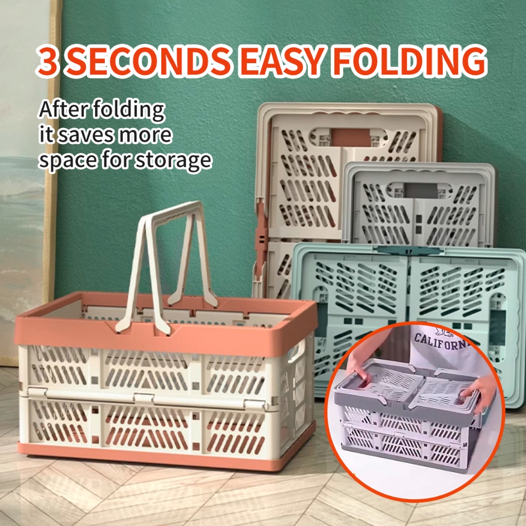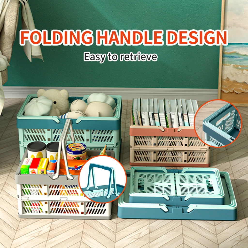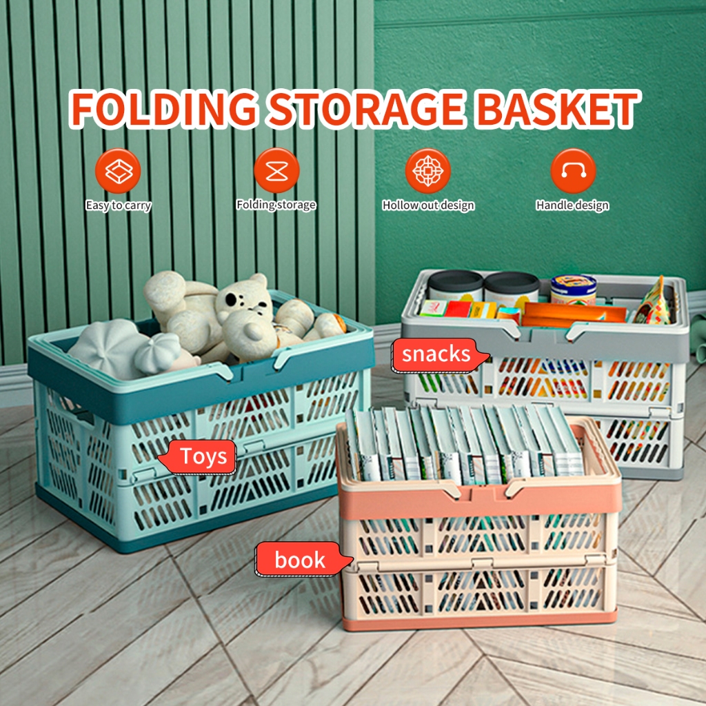 กล่องพับได้ เก็บของพลาสติก ตะกร้าพับได้ อเนกประสง สีพาสเทลขนานใหญ่