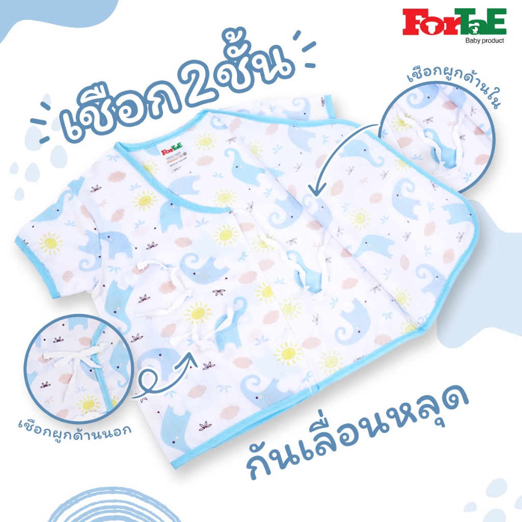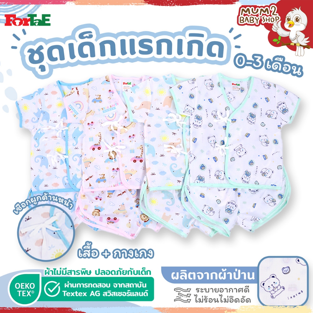 Fortae(ฟอร์เต้) ชุดผ้าป่านเด็กแรกเกิด เสื้อผูกหน้า+กางเกงขาสั้น ใส่แล้วเย็นสบาย ระบายอากาศดีเยี่ยม ไม่ร้อน ✩ ไซส์ 0-3 เดือน ✩ (โดยประมาณ ขึ้นอยู่กับน้ำหนักน้อง)