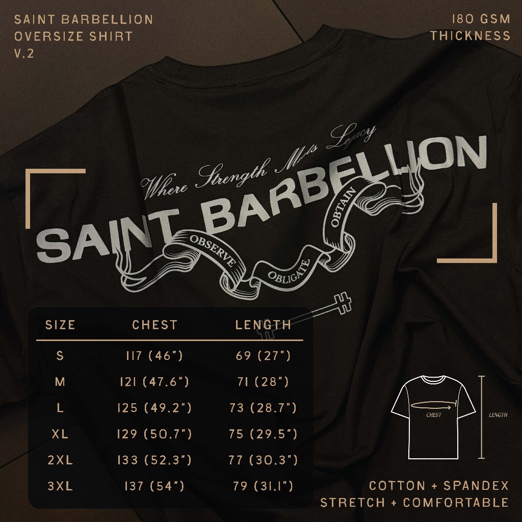 Saint Barbellion – Oversize Shirt V2 เสื้อยืดออกกำลังกาน ผ้า Cotton+Spandex 180GSM ผ้าไม่บาง ไม่หนาเกินไป ขนาดใหญ่