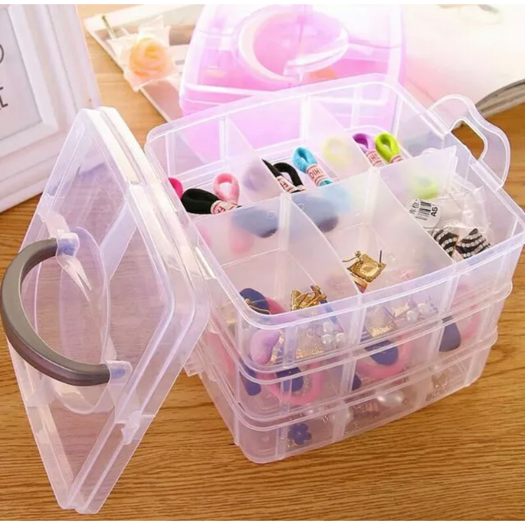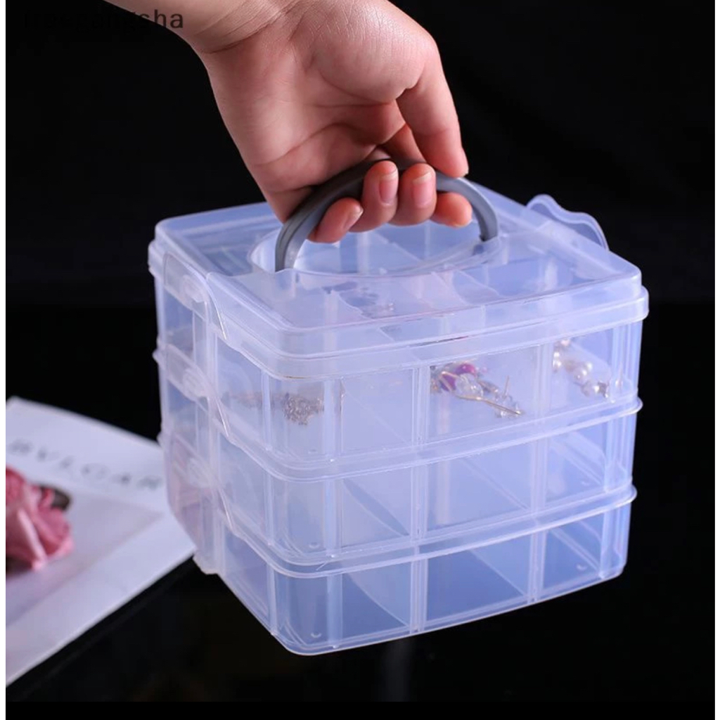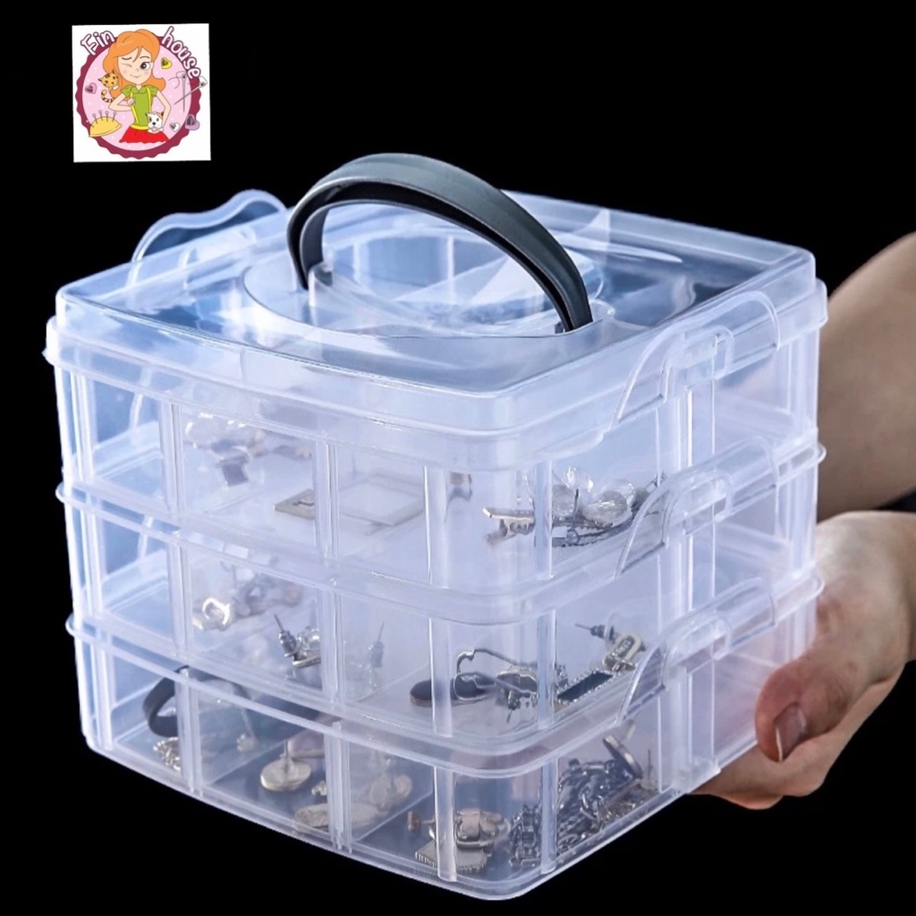 🪆 กล่องใส่ของ3 ชั้น 18 Grid Plastic Jewelry Earring Storage Box
