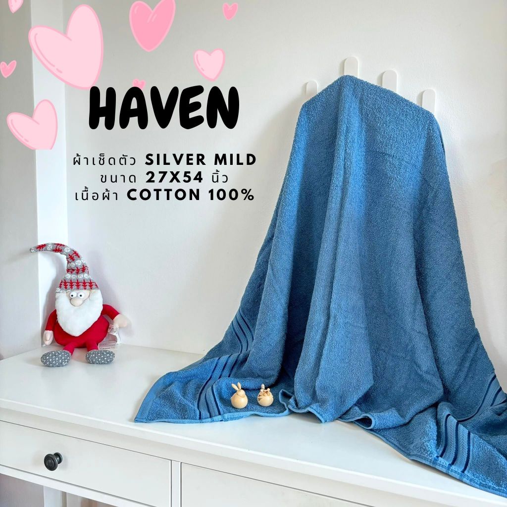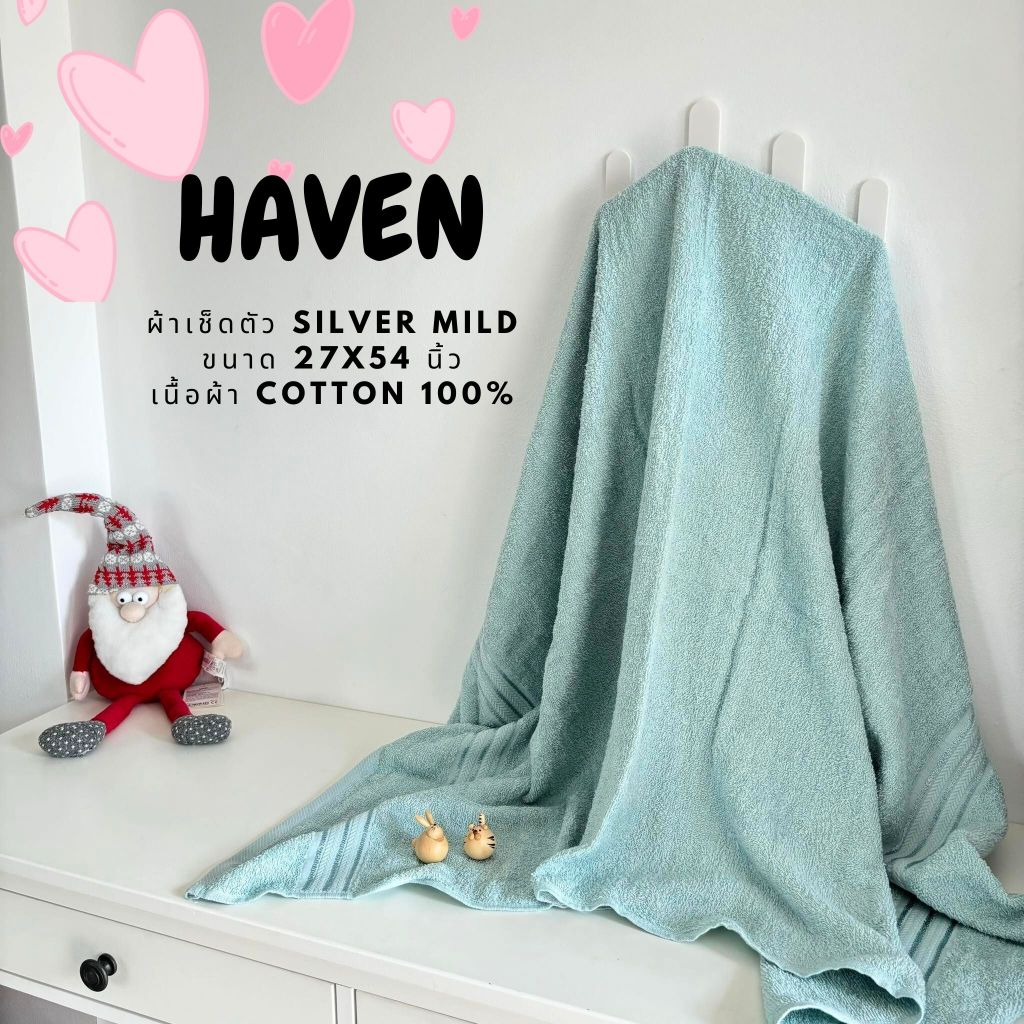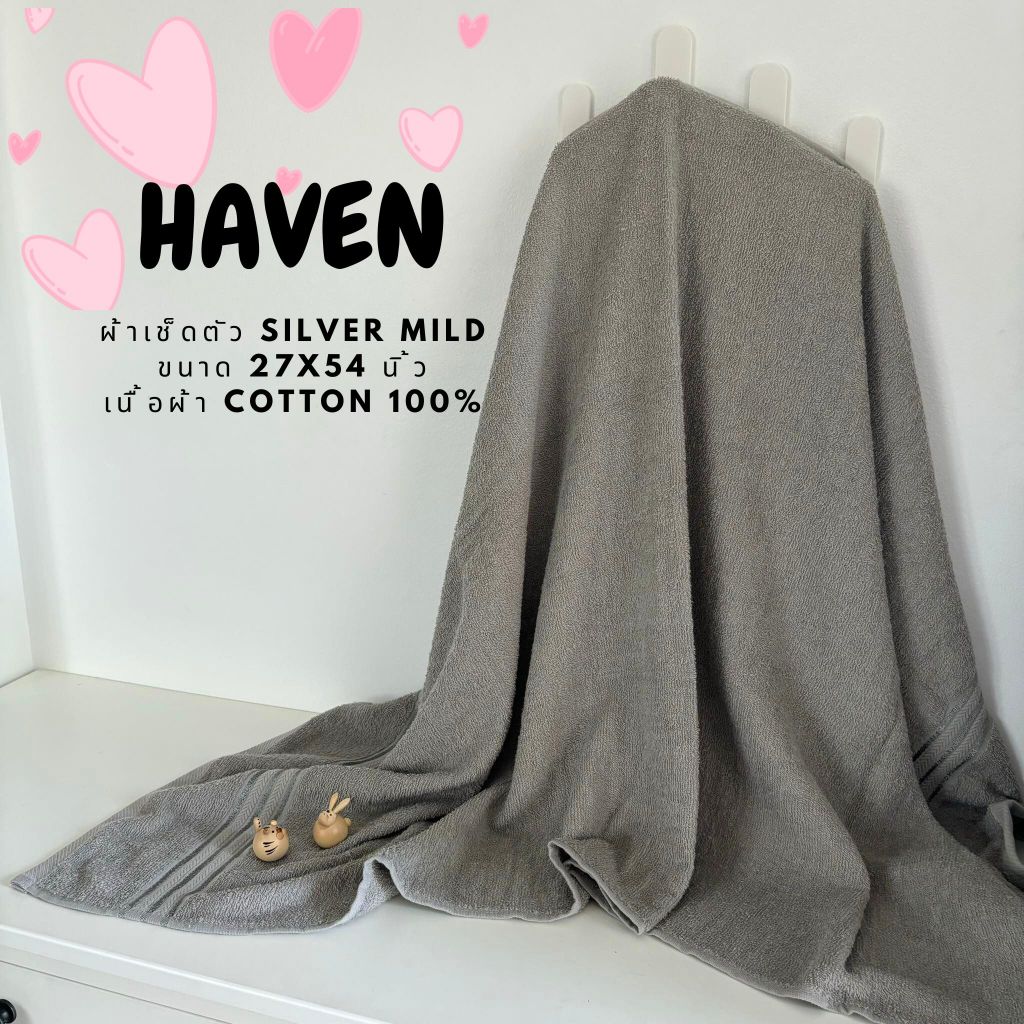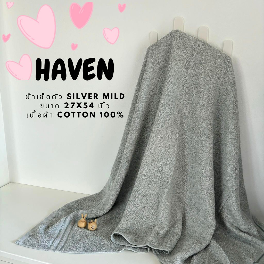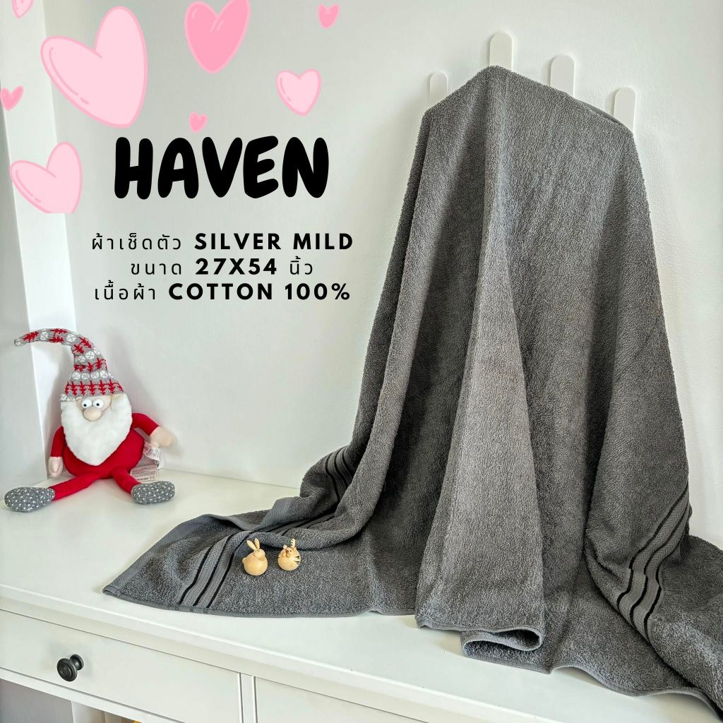 🍀HAVEN Towel SILVER MILD Cotton 100%🍀ผ้าเช็ดตัว ผ้าขนหนู ผ้าคอตตอน 100% ขนาด 27*54 นิ้ว HAVEN แท้💯
