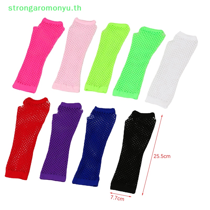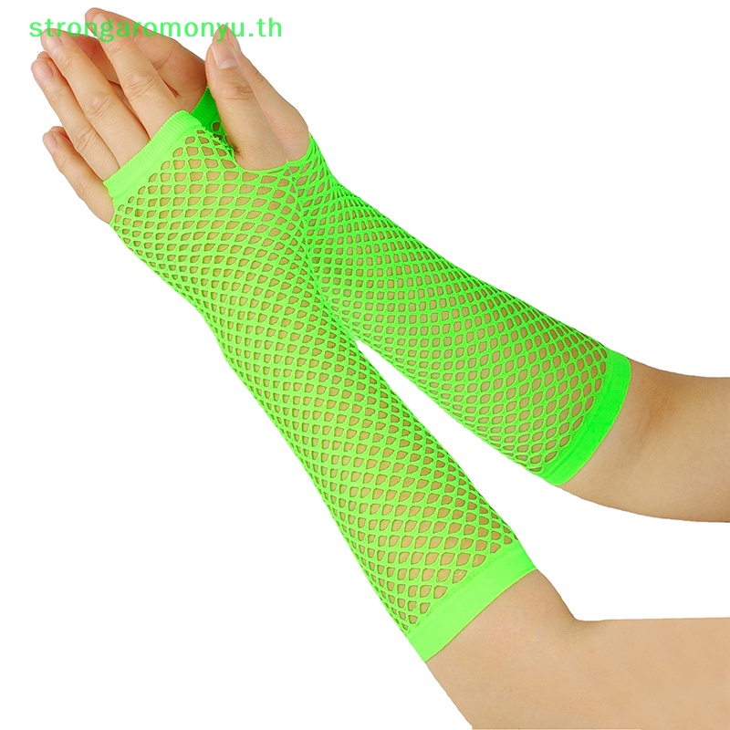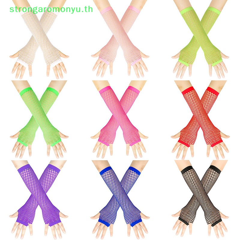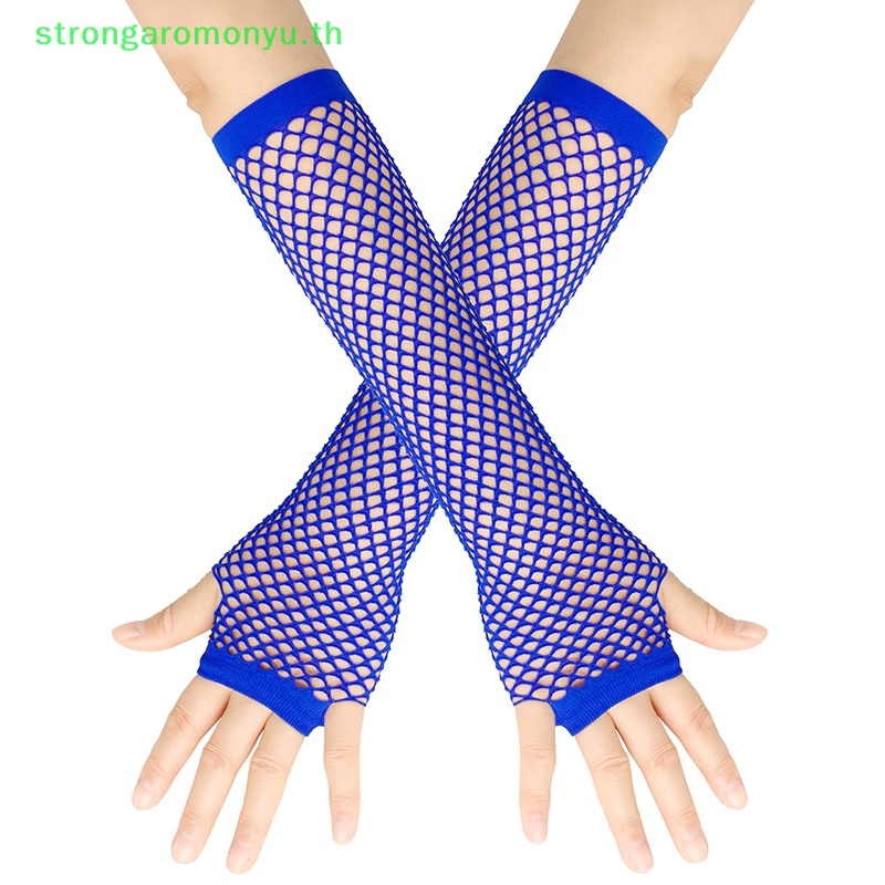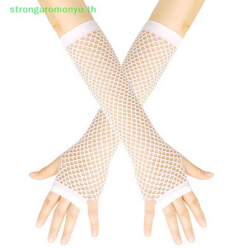 Strongaromonyu ถุงมือตาข่าย แบบยาว เซ็กซี่ สไตล์พังก์ร็อค ร็อค ไนท์คลับ ปาร์ตี้ 1 คู่