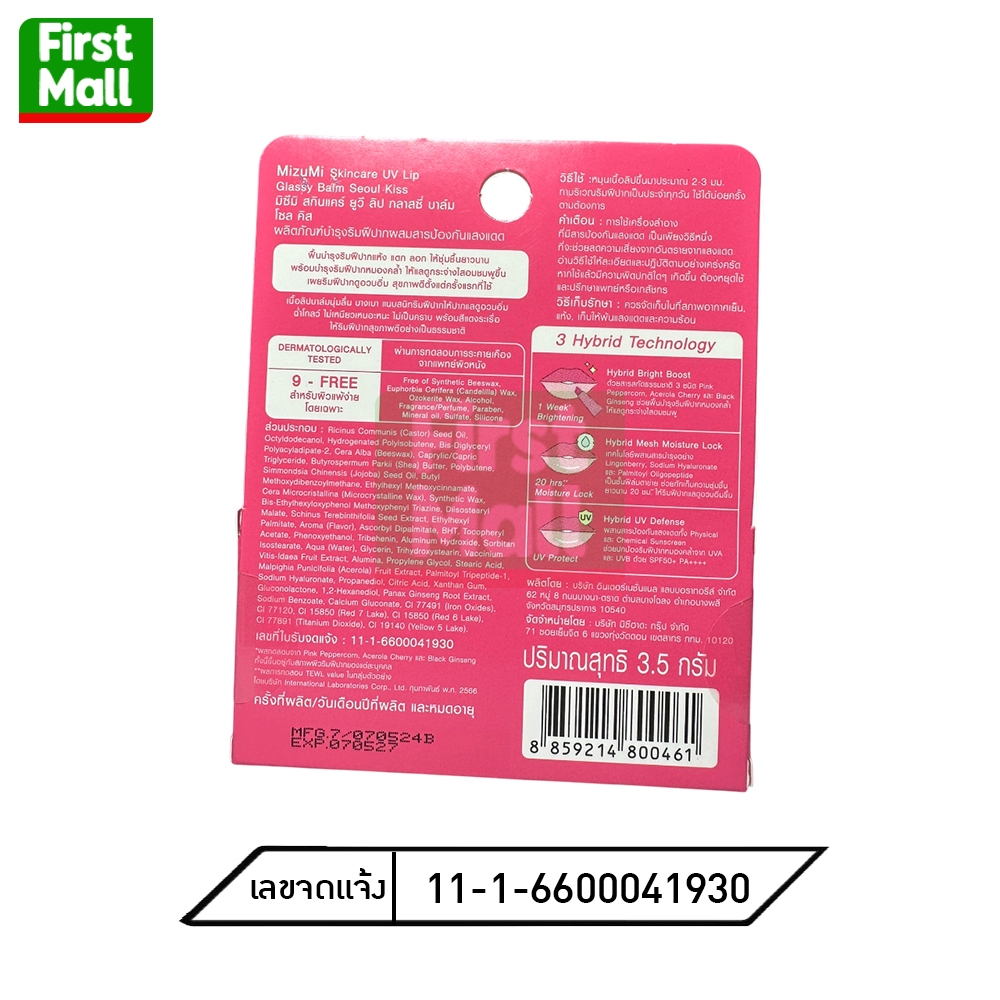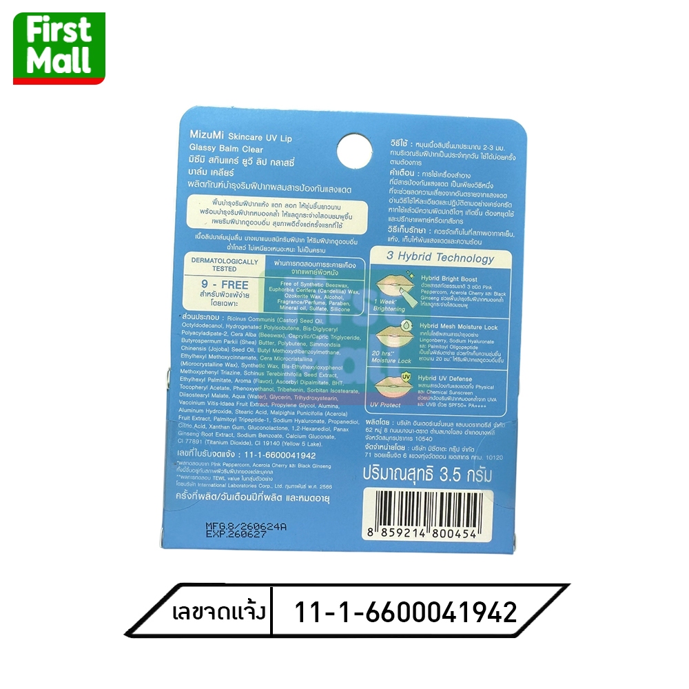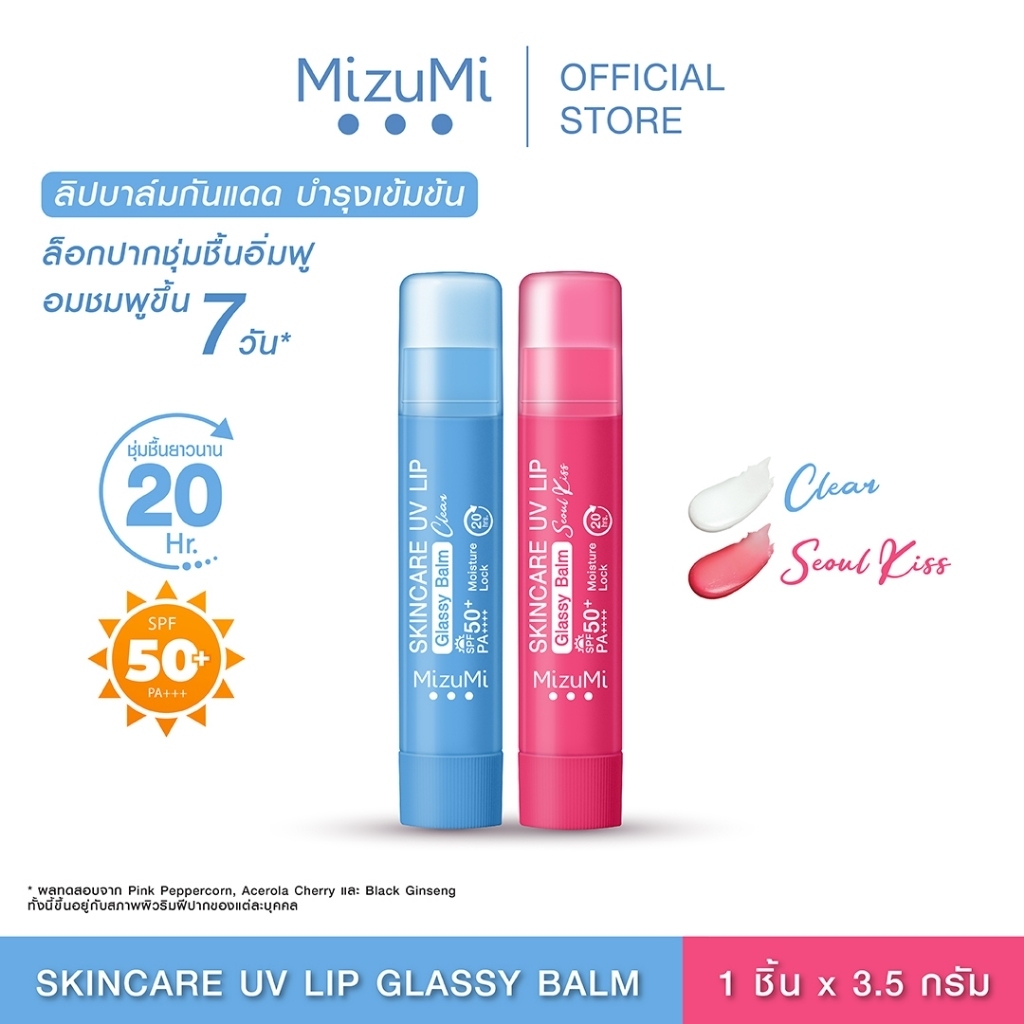 MizuMi Skincare UV Lip Glassy Balm ( 3.5g ) ลิปบาล์มกันแดด SPF50+ PA++++ ปากดูอมชมพู ชุ่มชื้นยาวนาน