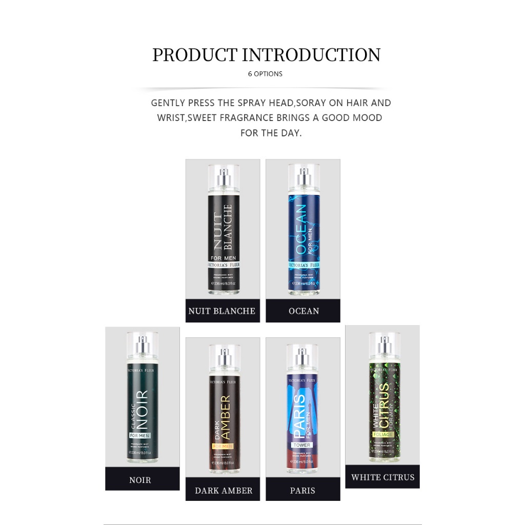 🧒🏻👦🏻🍊🍋🌿น้ำหอมVictoria’s Fleurสำหรับผู้ชายกลิ่นหอมลึกลับน่าดึงดูดน่าค้นหากลิ่นสะอาดผู้ดี236ML