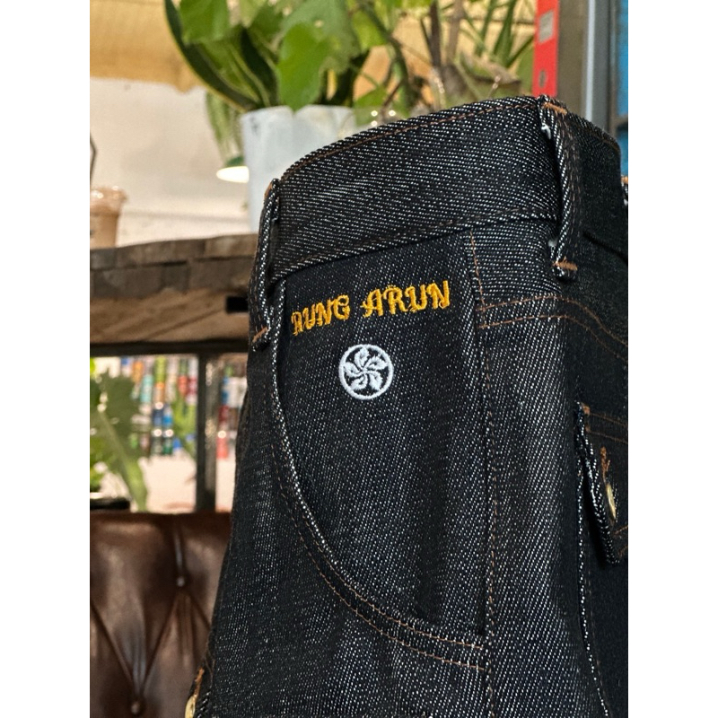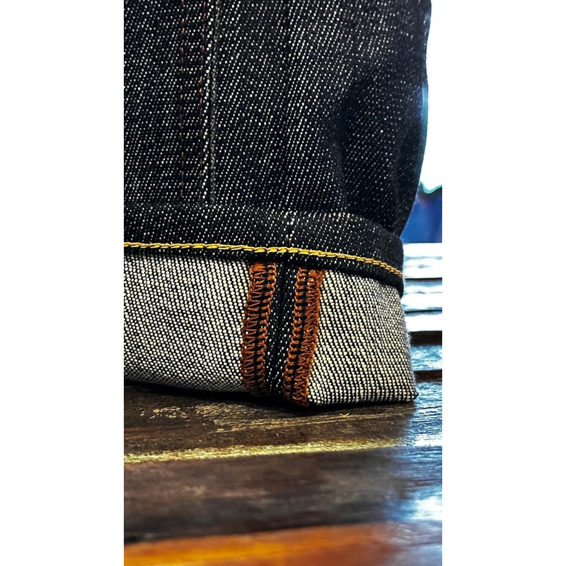 ผ้ารุ่นนี้ ทางเราใชผ้าน้ำหนัก17oz Sluby (Drak indigo)ซึ่งเป็นทีนำเข้ามาจากญี่ปุ่น โรงทอ #KUROKI เป็นผ้าสต็อก