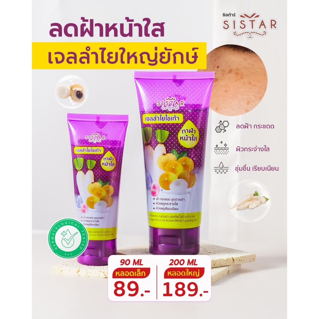 SistSistar Official ซิสต้าร์ ลองแกน เมลาสม่า แอคทีฟ ไวท์ ซูทติ้ง เจลลำไย ไชเท้า 200 กรัม (SST1904)