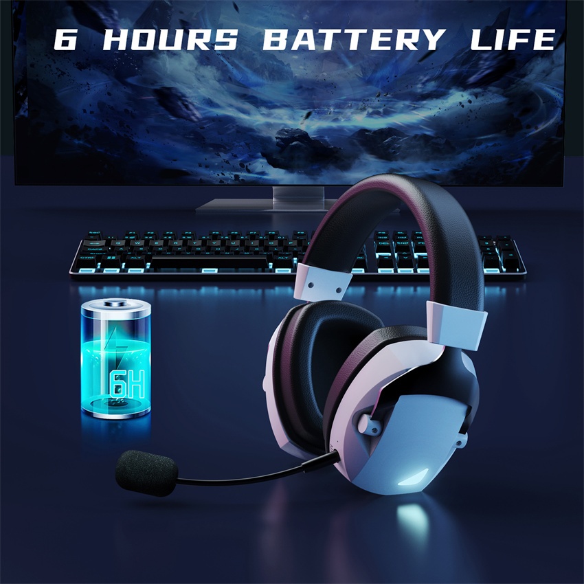 ชุดหูฟังสำหรับเล่นเกมไร้สาย 2.4Ghz สำหรับ PC, PS5, PS4, -MacBook- พร้อมไมโครโฟน, หูฟังสำหรับเล่นเกมบลูทู ธ แบบครอบหูสำหรับโทรศัพท์มือถือ, ที่ปิดหูกันหนาวแบบนุ่ม – เวลาเล่น 6 ชั่วโมง, โหมดใช้สายสำหรับเกมแพด Xbox Series ใหม่เท่านั้น