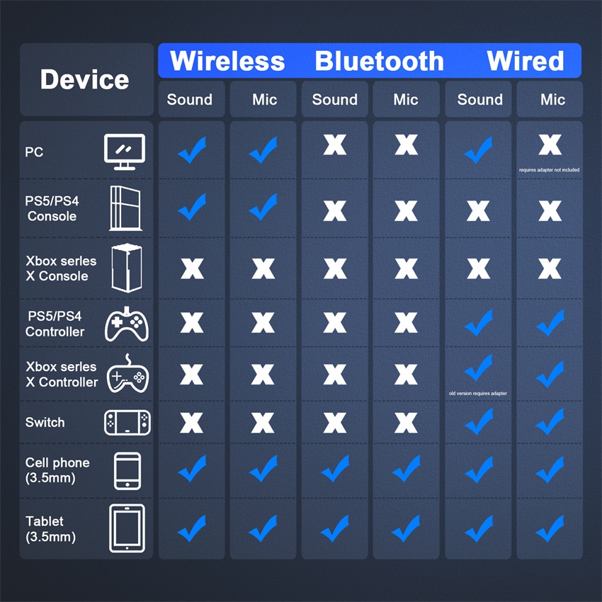 ชุดหูฟังสําหรับเล ่ นเกมไร ้ สายพร ้ อมไมโครโฟน 2.4G USB Dongle + Bluetooth + 3.5 มม.ชุดหูฟังเกมเมอร ์ PC แบบมีสายสําหรับ PS4 PS5 โทรศัพท ์ แล ็ ปท ็ อป