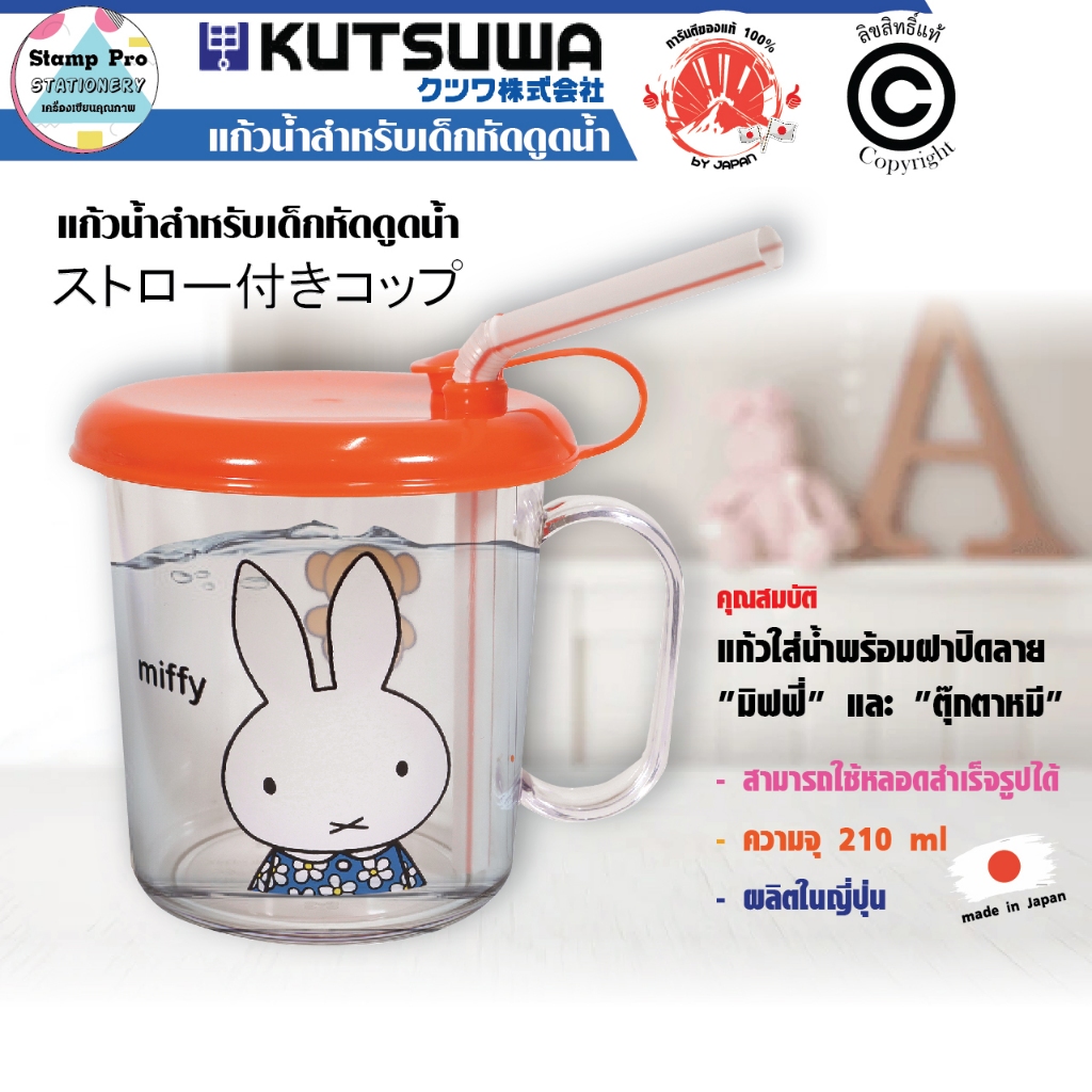 MIFFY แก้วน้ำ(KU-MF71) แก้วน้ำสำเร็จเด็กหัดดูดน้ำ ลายมิฟฟี่ และ ตุ๊กตาหมี ความจุ 210 มล. ผลิตในประเทศญี่ปุ่น