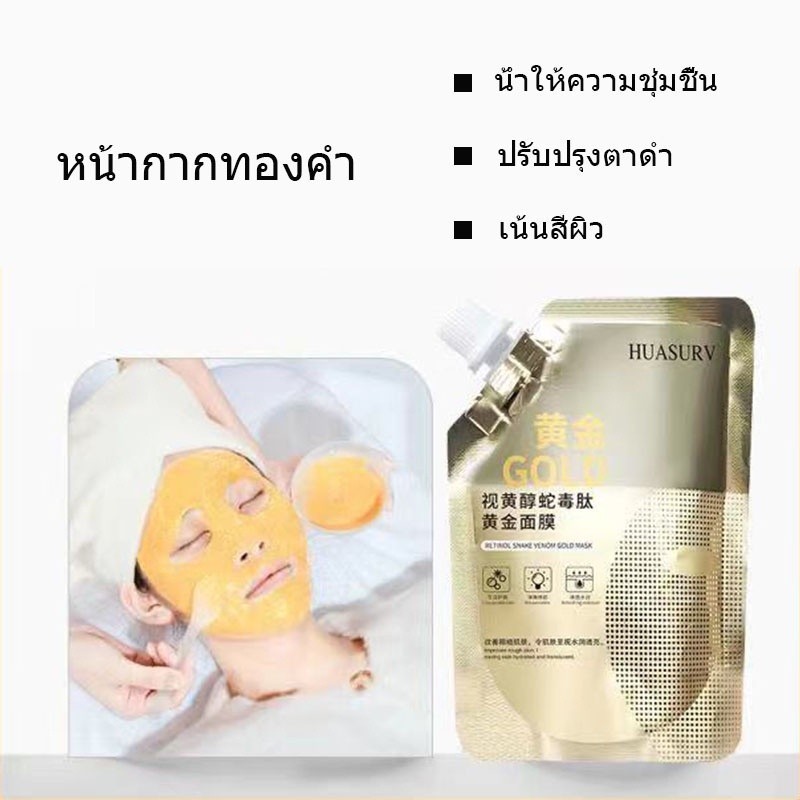 มาส์กลอกหน้าทองคำ HUASURV มาส์กหน้า ตัวดังTiktok ครีมมาส์กหน้าไวท์เทนนิ่ง มาส์กทองคำแท้ หน้าใสเด้งกระชับ มาร์คหน้า