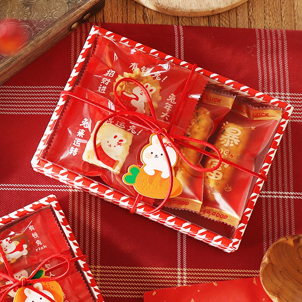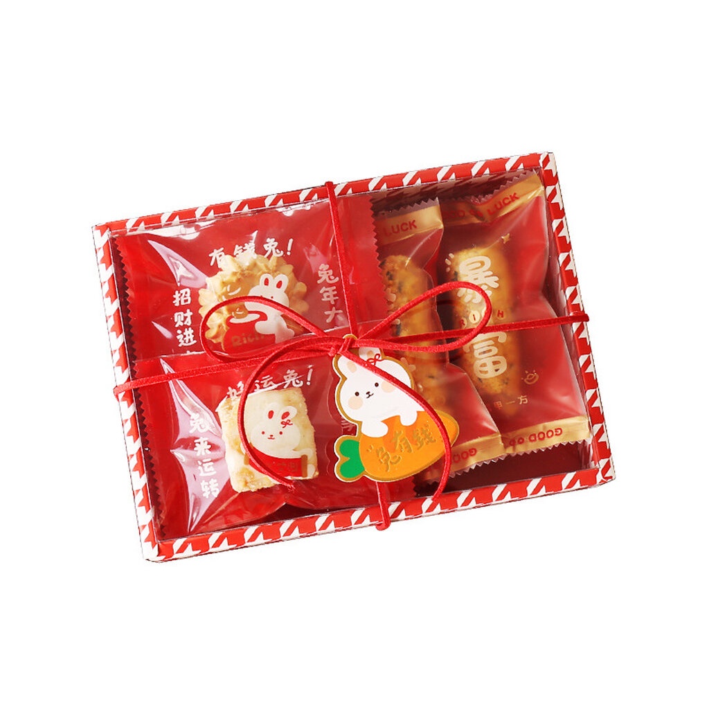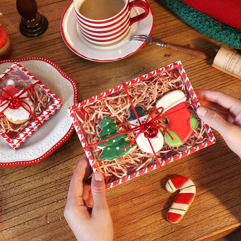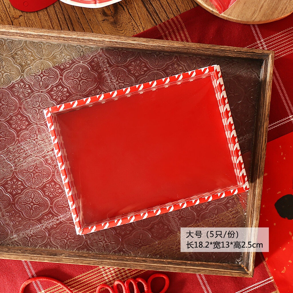 (5ใบ)กล่องใส่คุกกี้ กล่องของขวัญลายสีแดงขาว เหมาะกับเทศกาลคริสต์มาส ปีใหม่ ตรุษจีน