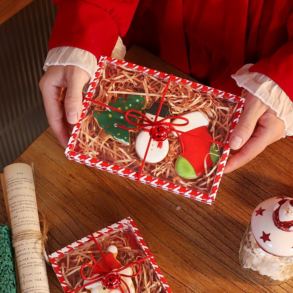 พร้อมส่งจากไทย* (5ใบ)กล่องใส่คุกกี้ กล่องคริสต์มาส กล่องของขวัญลายสีแดงขาว เหมาะกับเทศกาลคริสต์มาส ปีใหม่ ตรุษจีน