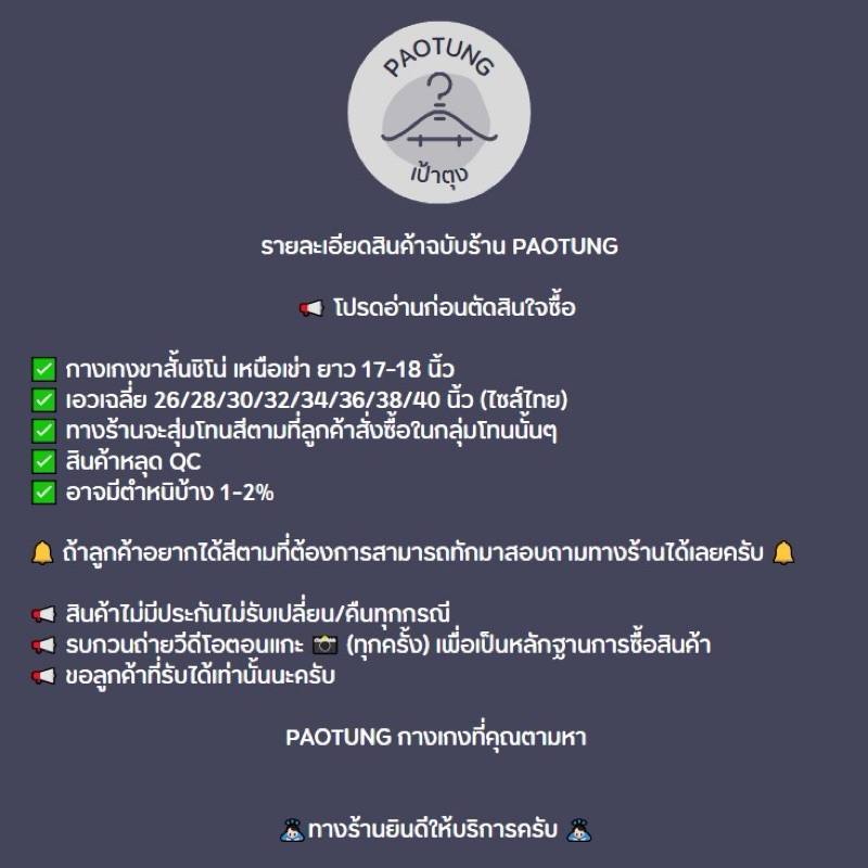 – กางเกงขาสั้นชิโน่เหนือเข่ายาว 17-18 นิ้ว