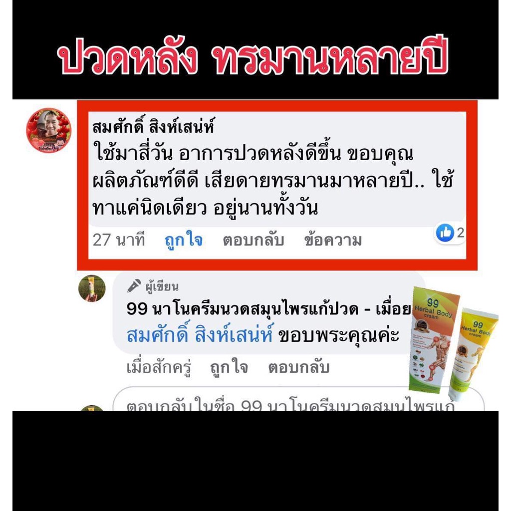 – แก้ปวดและถอนพิษฟกบวม ใช้ได้ทุกเพศทุกวัย ผู้สูงอายุ และ ผู้ปวดเมื่อยกล้ามเนื้อ ปวดข้อ ปวดเข่า เป็นประจำ