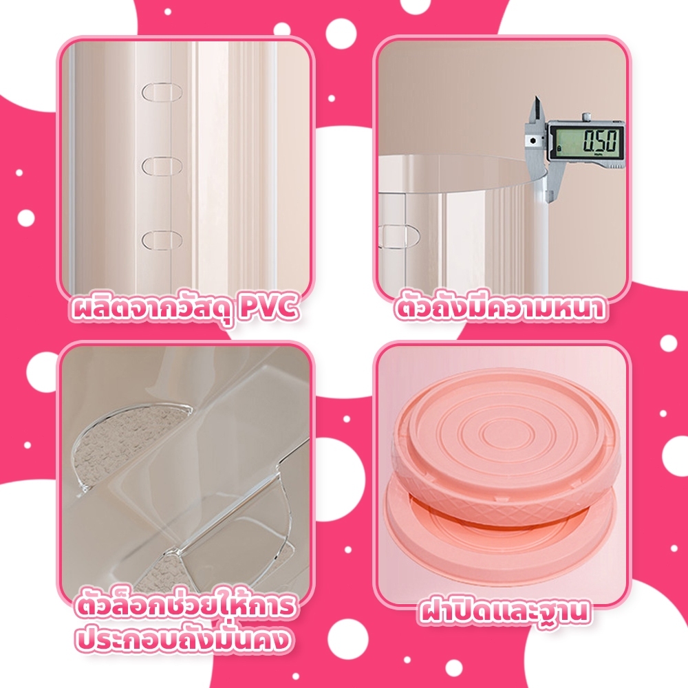 evebell ถังเก็บตุ๊กตา PVC ใส ทรงกระบอก หมุนได้ ถังโชว์ตุ๊กตา ขนาดใหญ่ ฝาสีชมพู