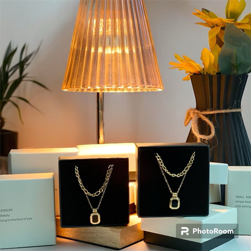 สร้อยคอโซ่มาพร้อมสร้อยคอจี้สี่เหลี่ยม2เลเยอร์