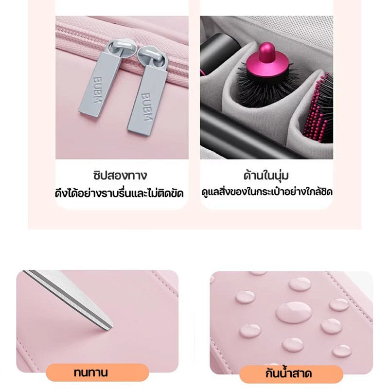👜 การออกแบบที่ลงตัว: กระเป๋าเครื่องสำอางนี้ออกแบบมาเพื่อรองรับ Dyson Airwrap Styler โดยเฉพาะ มีช่องแบ่ง 4 ช่องและกระเป๋าหลัก 1 ช่องสำหรับจัดเก็บ Airwrap และอุปกรณ์เสริมต่างๆ พร้อมกระเป๋าซิปสำหรับแปรงและของสำคัญอื่นๆ