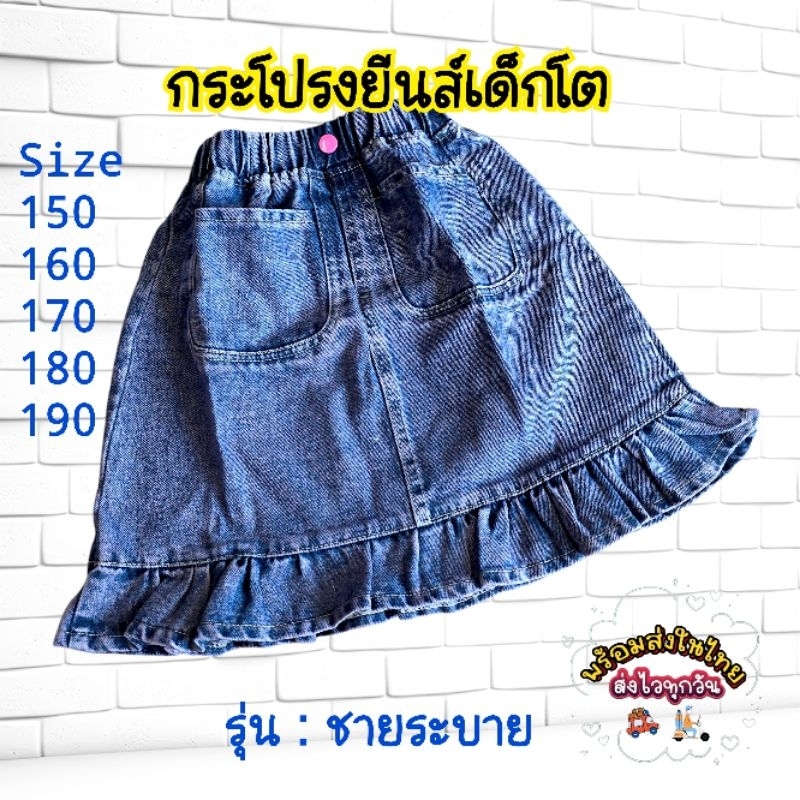 M0023 กระโปรงยีนส์เด็กโต 7-15 ขวบ กระโปรงยีนส์เด็กแต่งจีบพลีท กระโปรงสั้นเด็กโต
