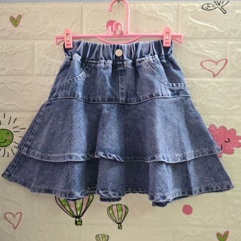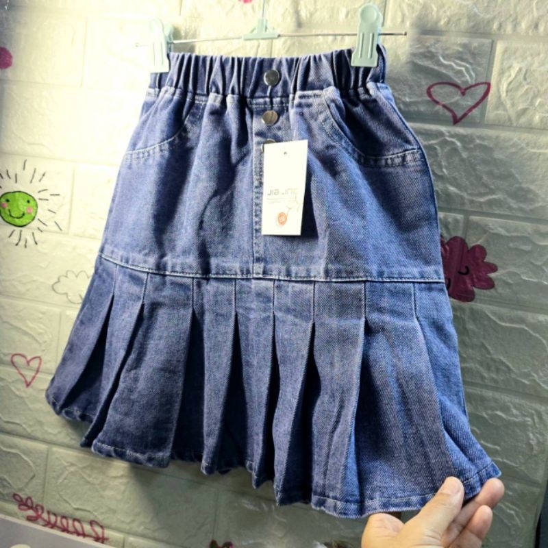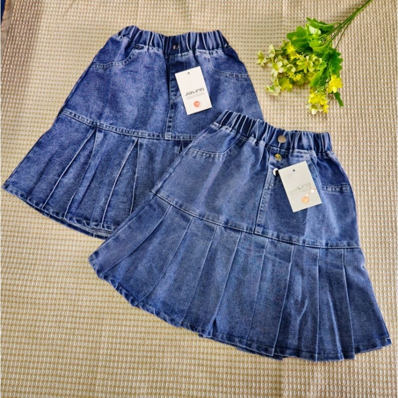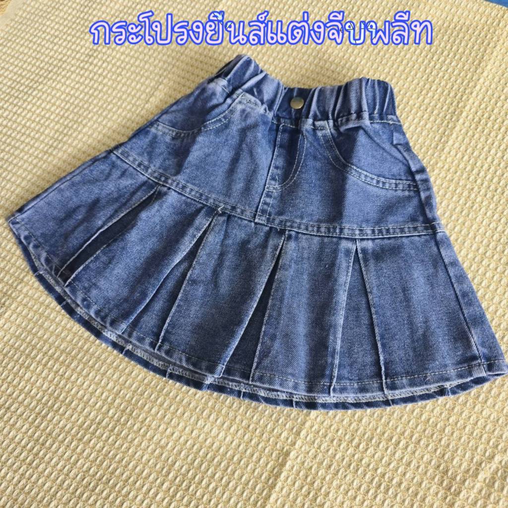 ♥กระโปรงยีนส์เด็กหญิง กระโปรงยีนส์เด็กโต 7-15 ขวบ แต่งจีบพลีทน่ารักๆ