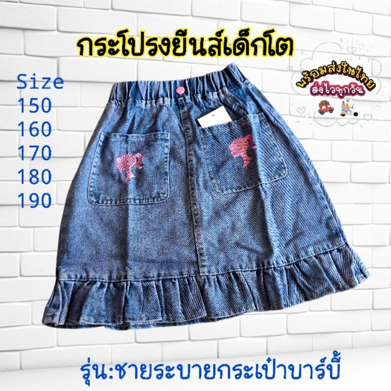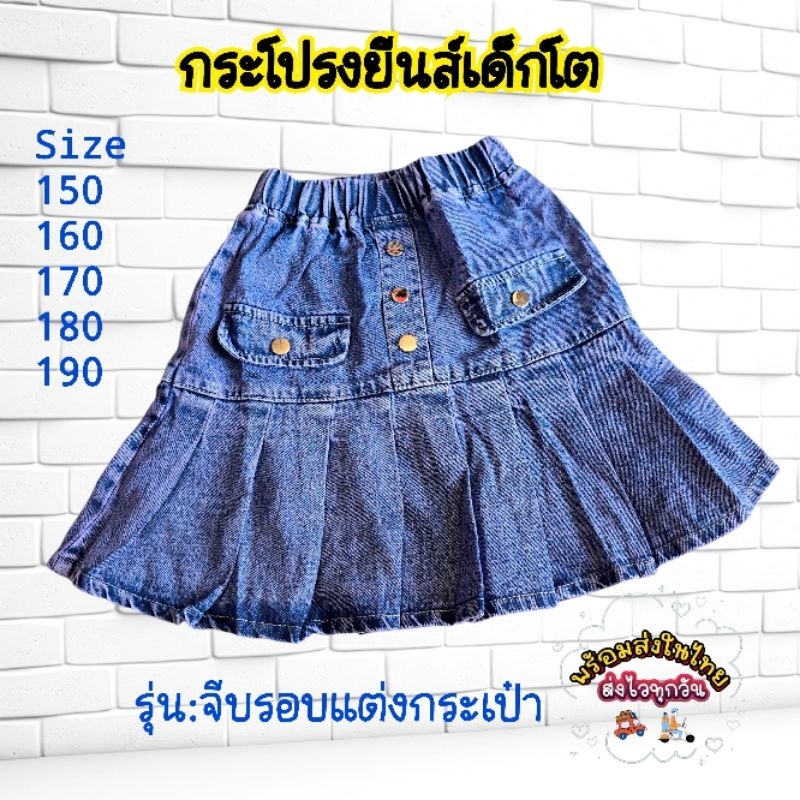 หยิบใส่ตะกร้าM0023 กระโปรงยีนส์เด็กโต 7-15 ขวบ กระโปรงยีนส์เด็กแต่งจีบพลีท กระโปรงสั้นเด็กโต
