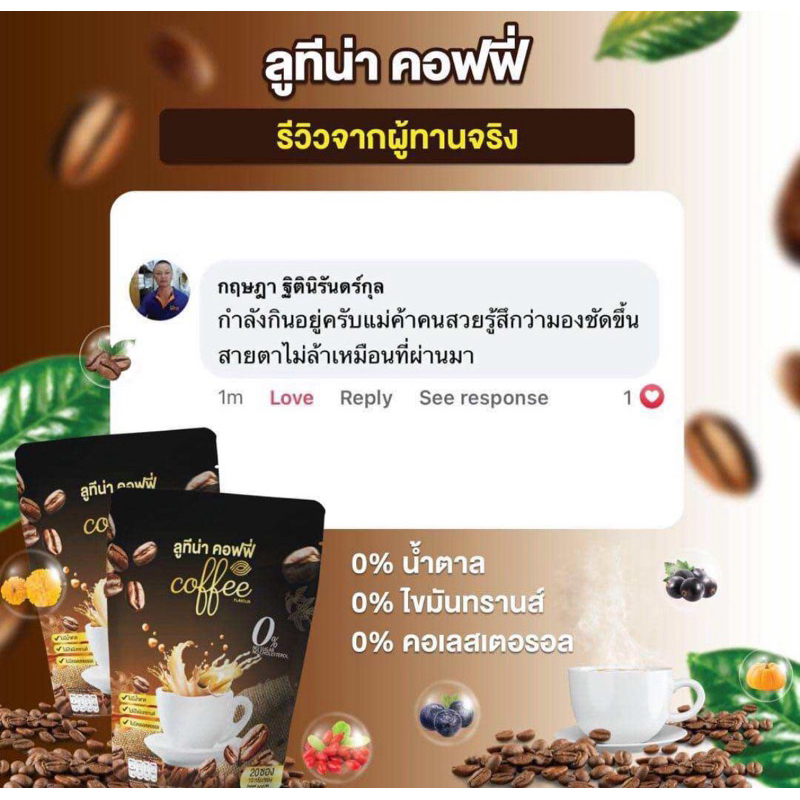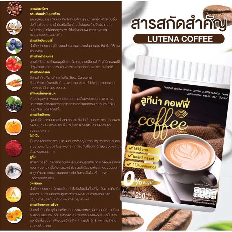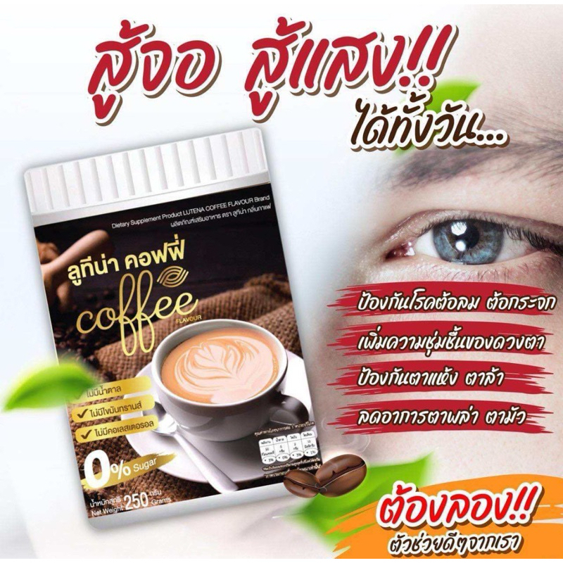 กาแฟลูทีน่า ช่วยในเรื่อง ปวดตา ตาแห้ง ตาเบลอ บำรุงจอประสาทตา ตาเป็นต้อ เบาหวานขึ้นตา วุ้นในตาเสื่อม ป้องกันแสงสีฟ้าและรับสียูวี