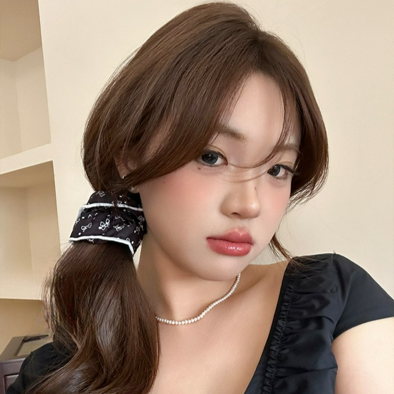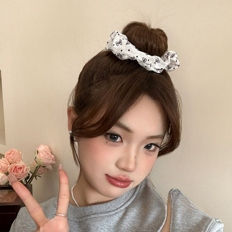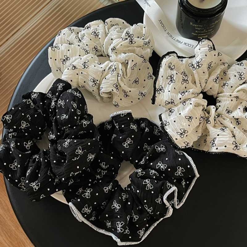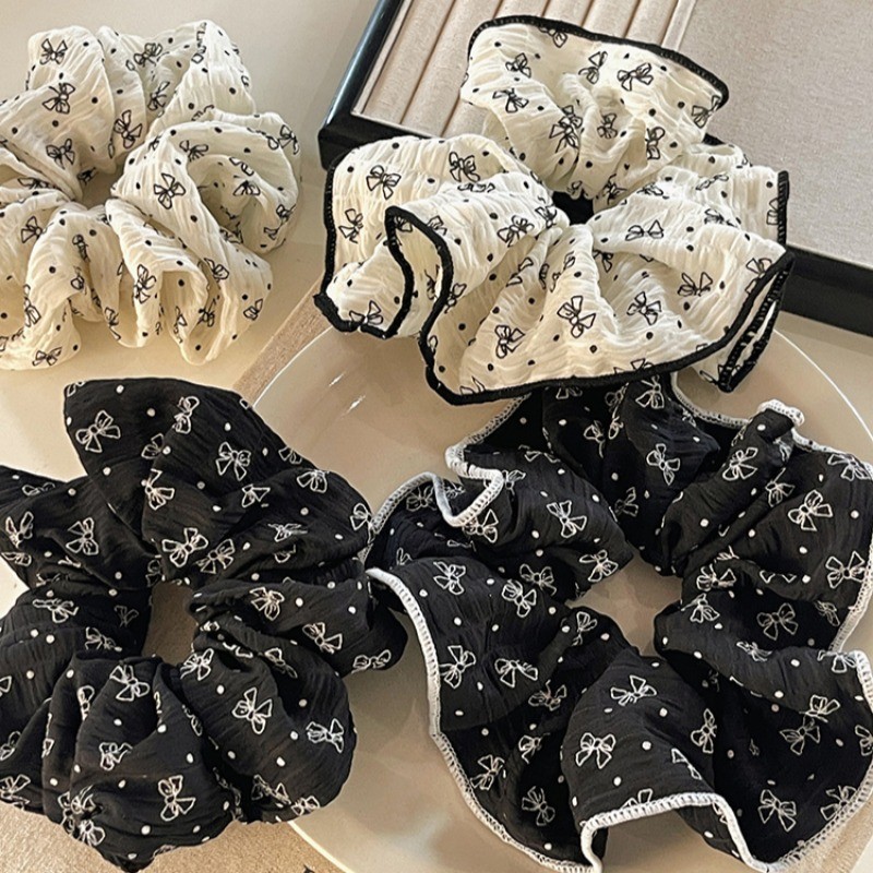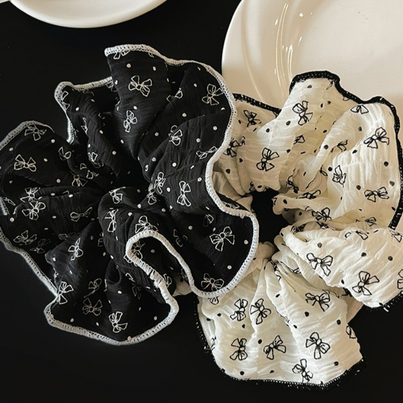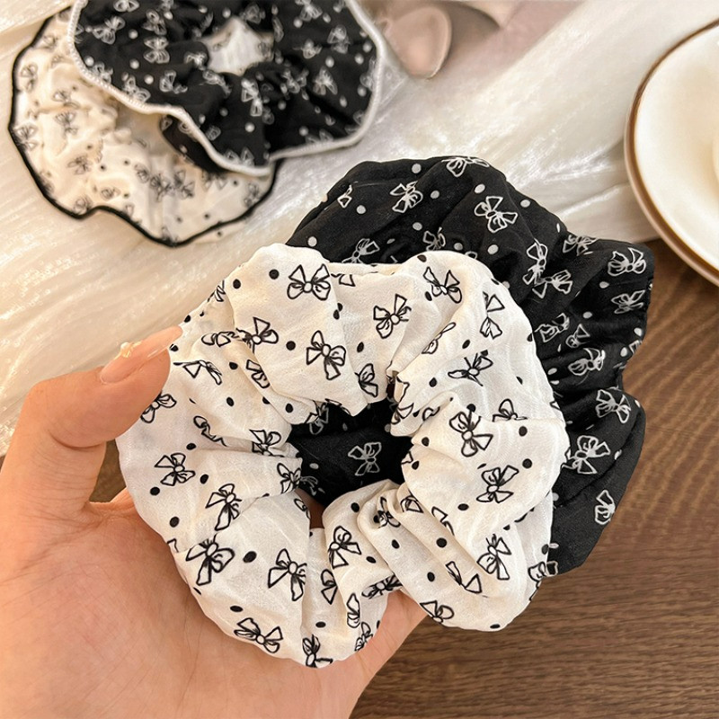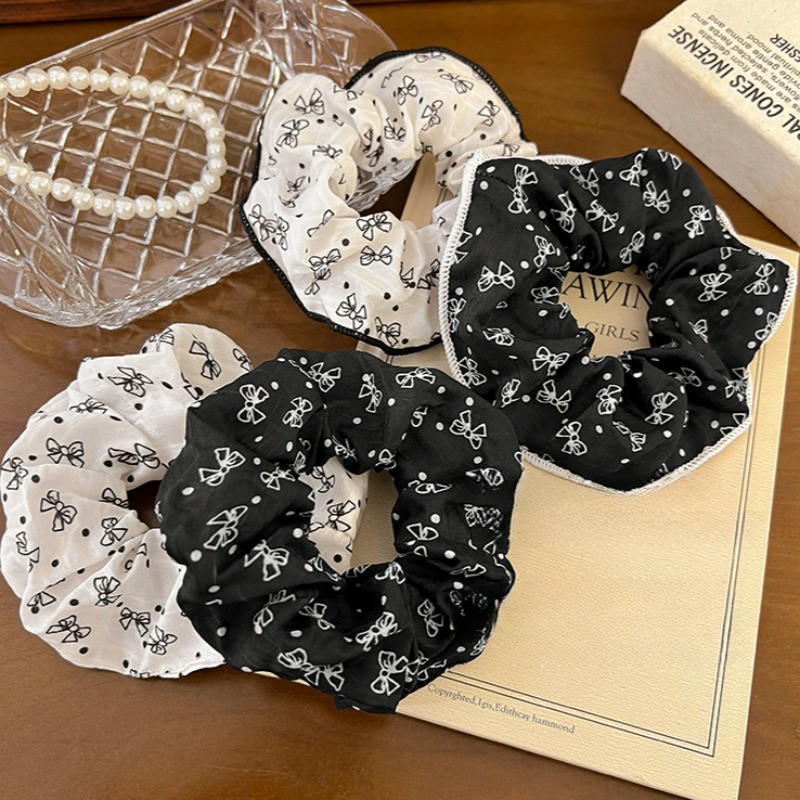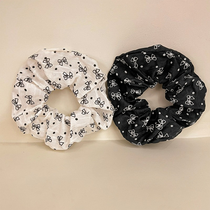 สีดําสีขาว Bowknot ผมผูกยางรัดหัวเชือก Scrunchies เกาหลีอุปกรณ์เสริม