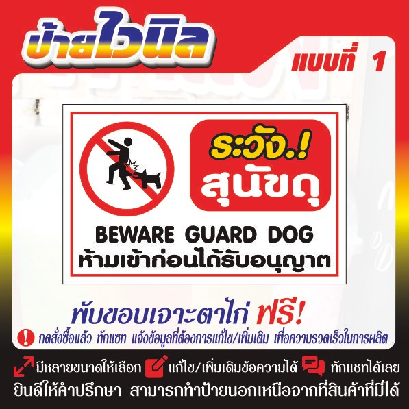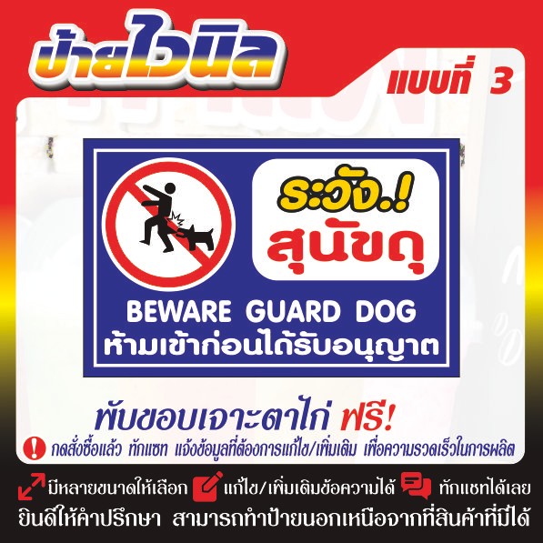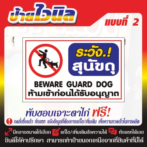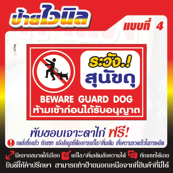 ป้ายไวนิล (V16) ระวังสุนัขดุ ขวางทางเข้า-ออก ป้ายกรุณาอย่าจอดรถขวางทาง ห้ามเข้าก่อนได้รับอนุญาต